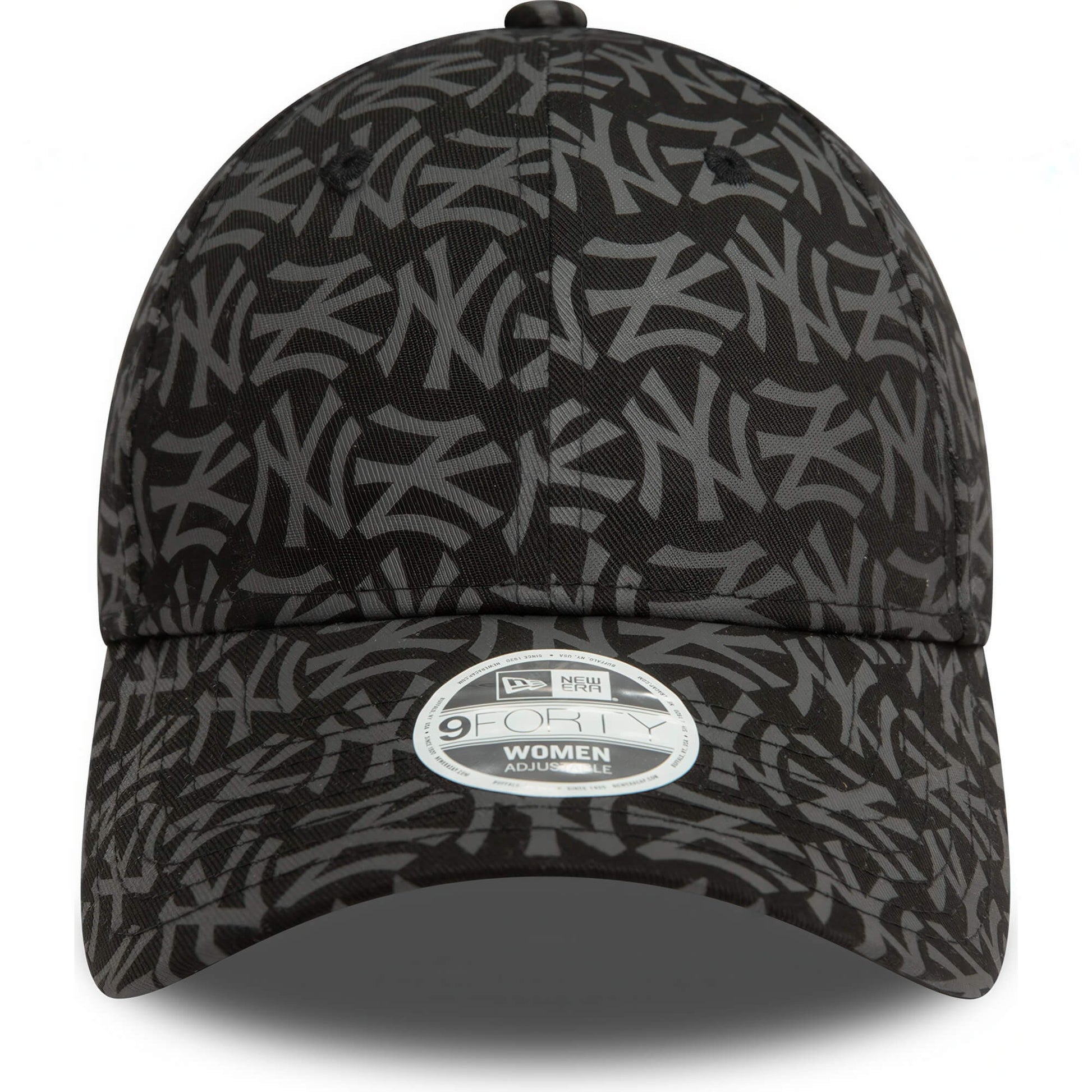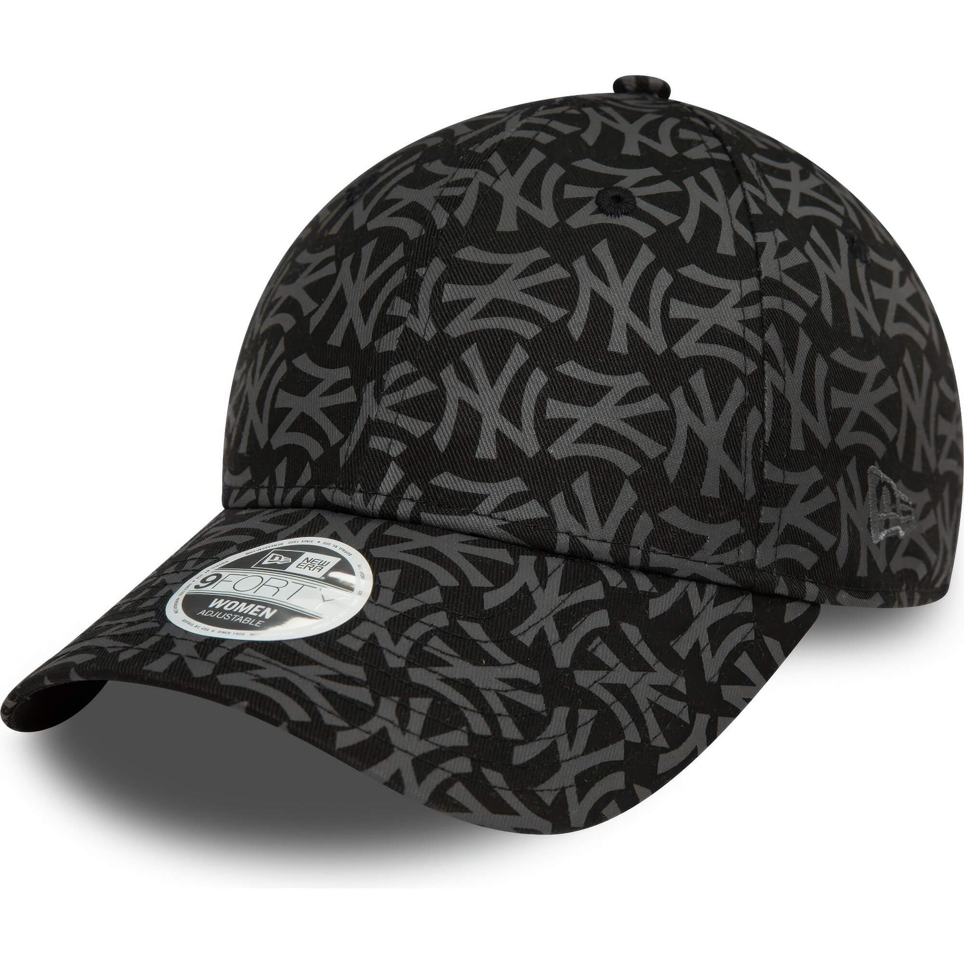 Dámska čierna šiltovka značky New Era s motívom bejzbalového klubu New York Yankees a monogramovým dizajnom. Nastaviteľná veľkosť. Oficiálny licencovaný produkt MLB.