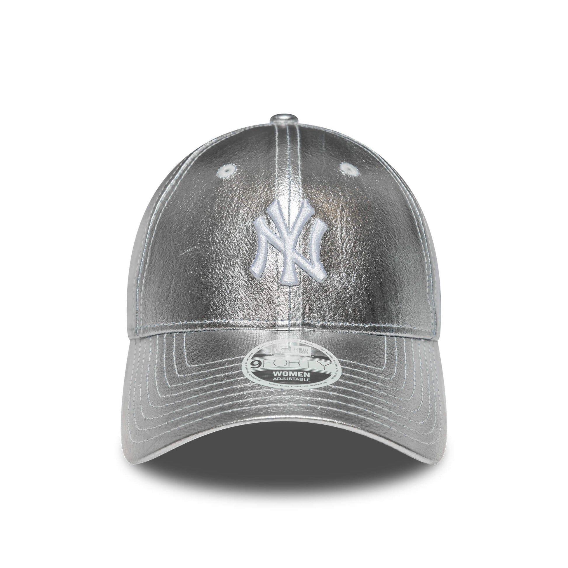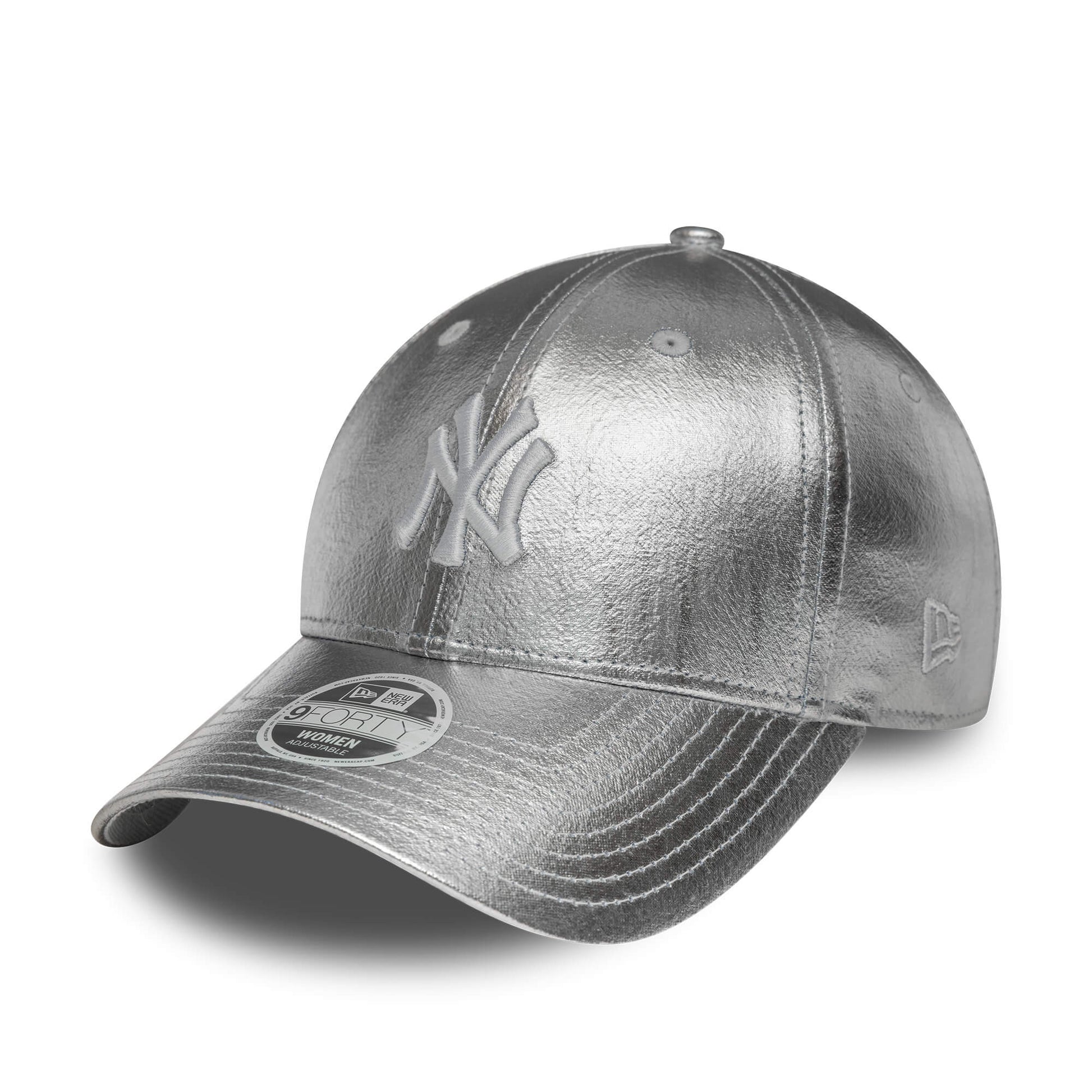 · Dámska šiltovka New Era 9FORTY Metallic Silver s menším logom New York Yankees na prednej strane.