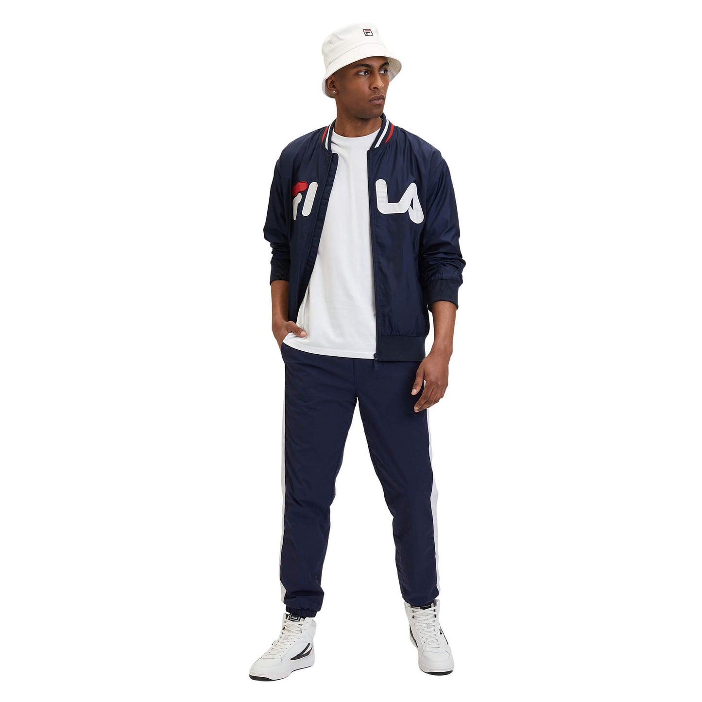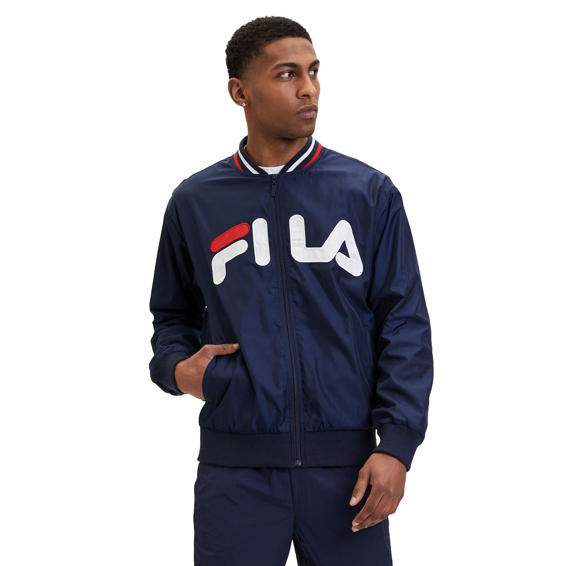 Tenká bunda Fila LOGRONO logo bomber jacket Black Iris tmavomodrá