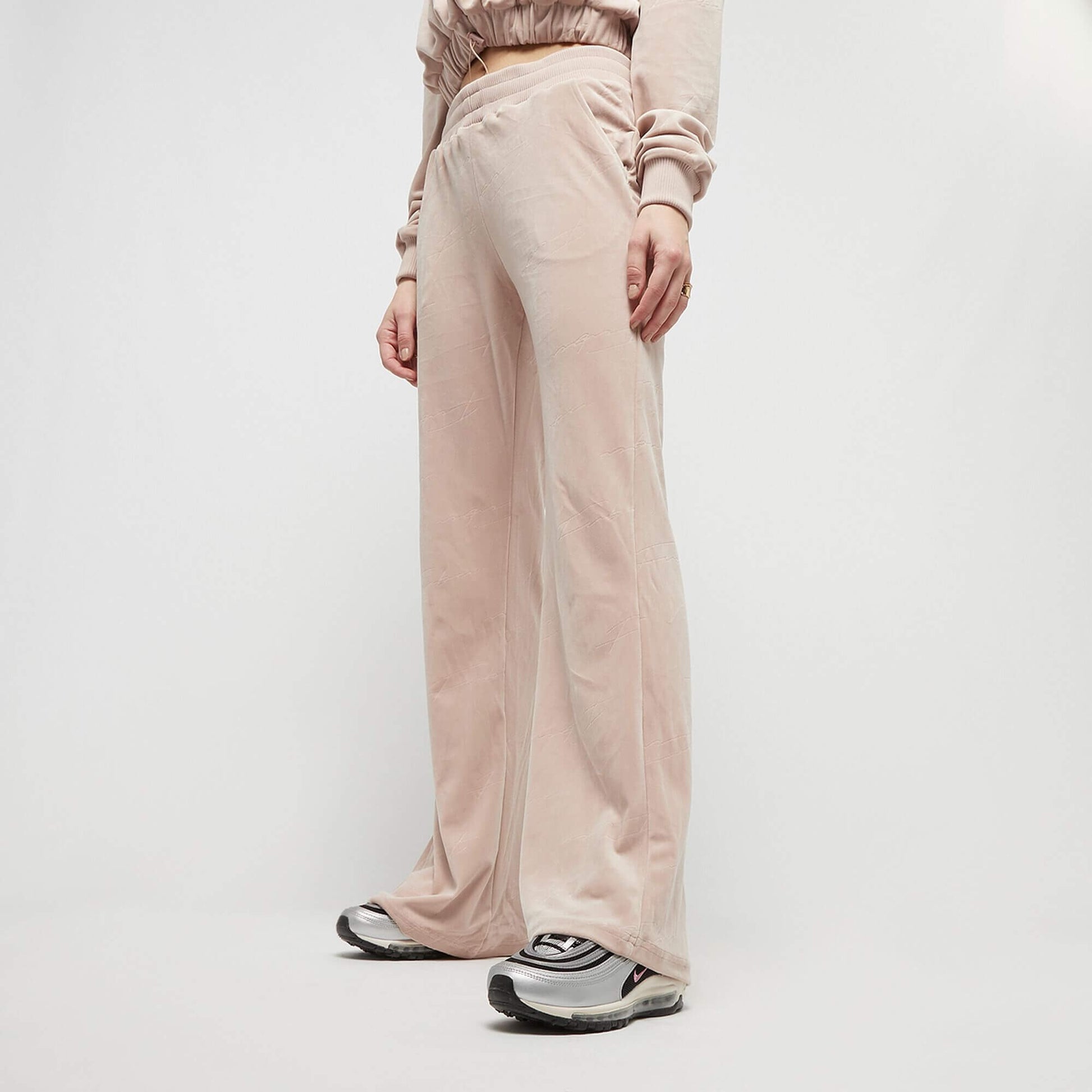 Dámske tepláky FUBU Signature Allover Velour Pants bledohnedé