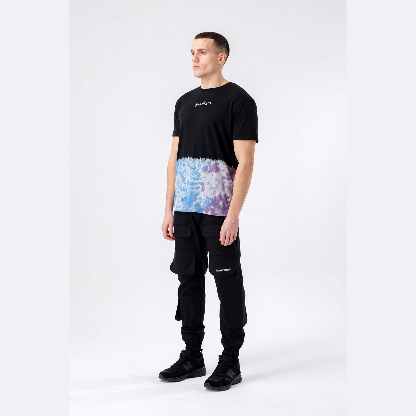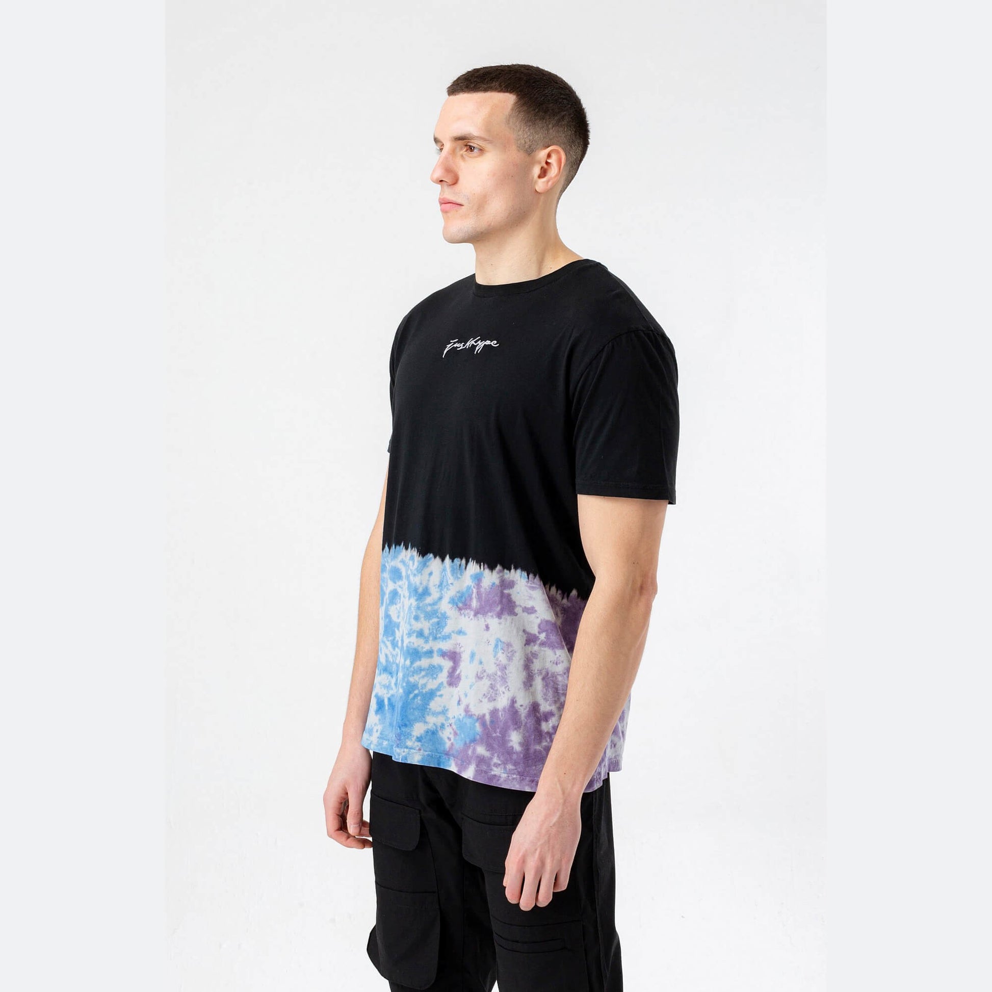 Hype Mens Blue Rush Dye Scribble T-Shirt Black