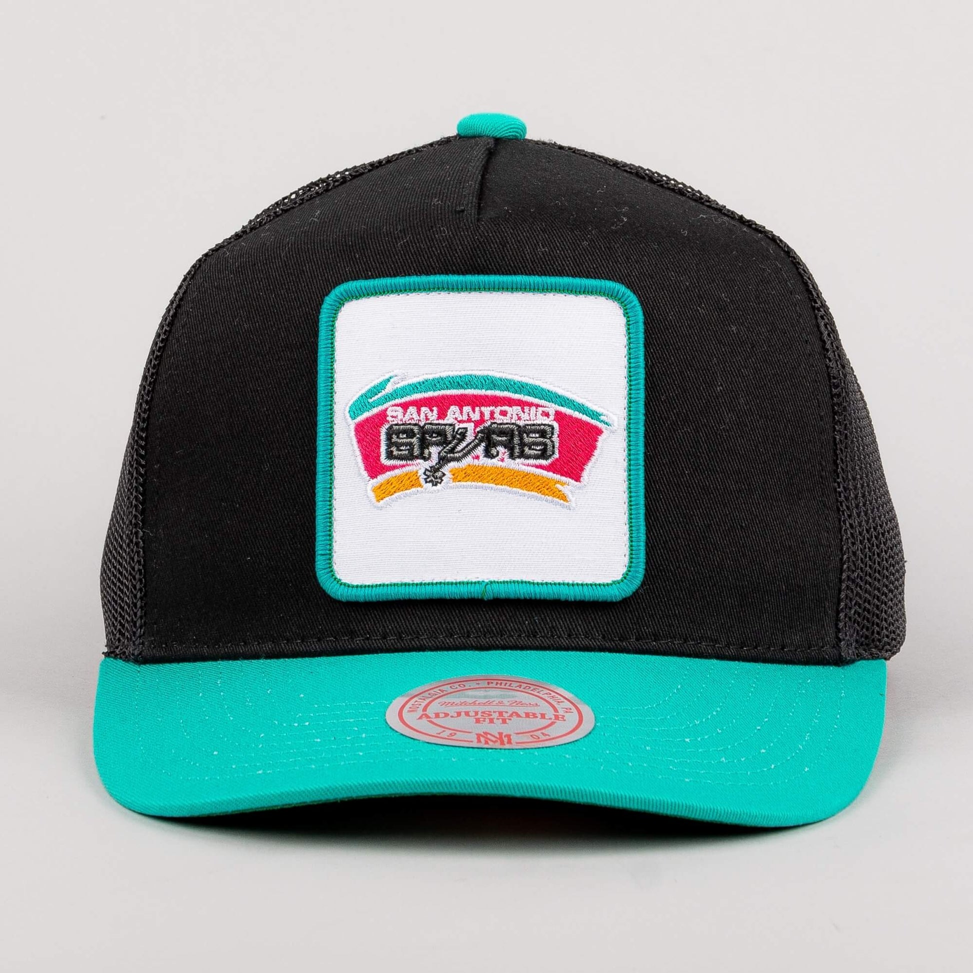 Čierna šiltovka so sieťkou značky Mitchell & Ness s motívom basketbalového tímu San Antonio Spurs. Edícia Hardwood Classics. Nastaviteľná veľkosť snapback. Oficiálne licencovaný produkt NBA.