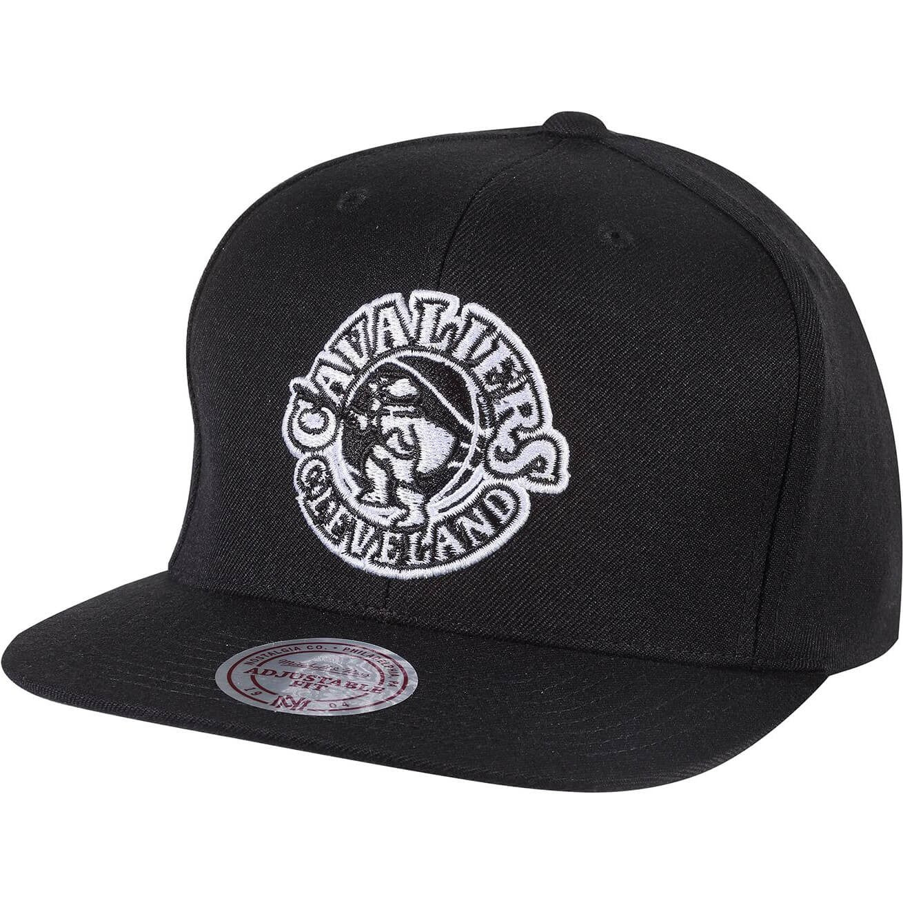 Čierna šiltovka s rovným šiltom značky Mitchell & Ness s motívom basketbalového klubu Cleveland Cavaliers. Nastaviteľná veľkosť pomocou zapínanie snapback. Oficiálne licencovaný produkt NBA.