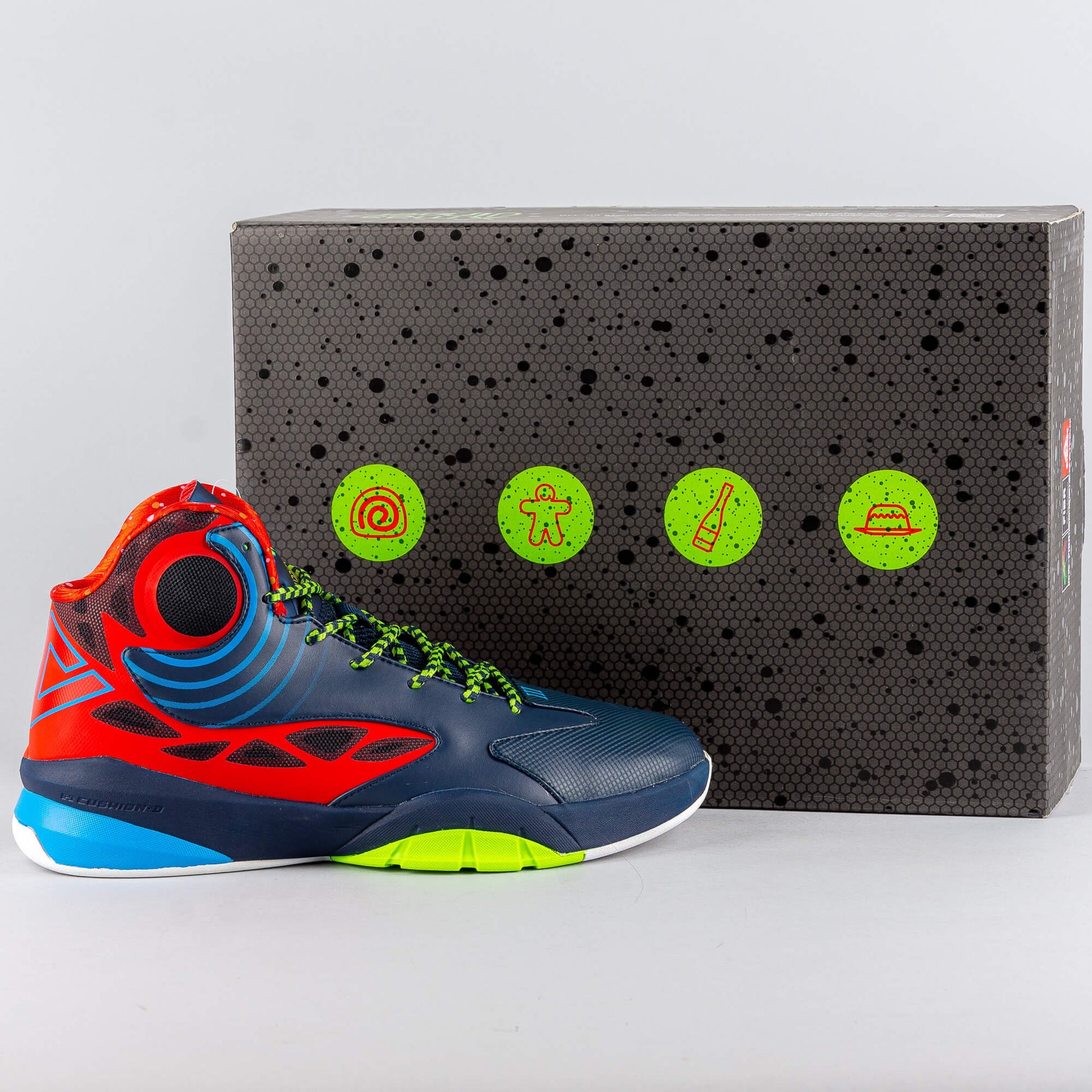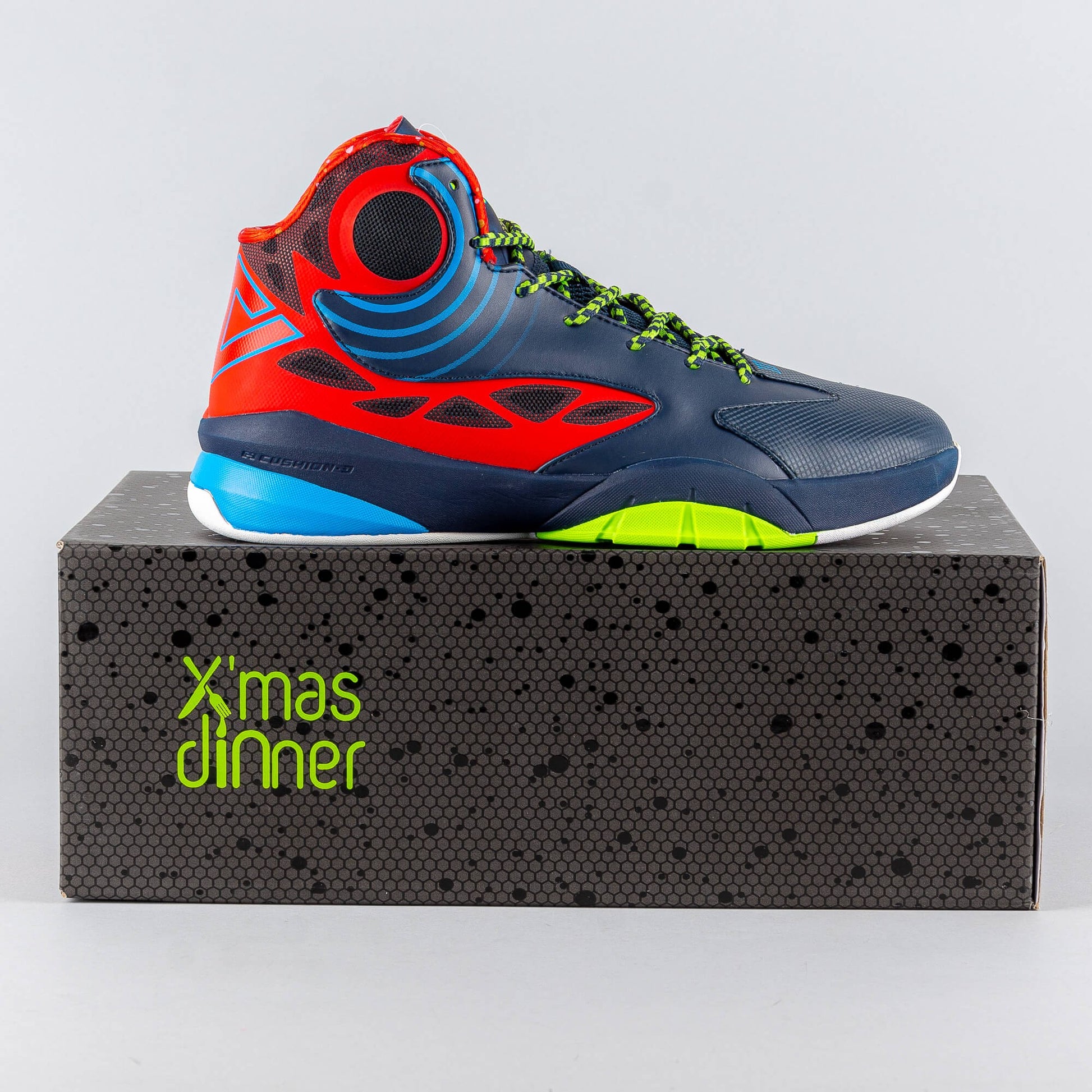 Špičkové basketbalové tenisky z kolekcie Hurricane v edícii "Christmas". Zvýšený strih zabezpečuje vynikajúcu ochranu chodila a členkov.