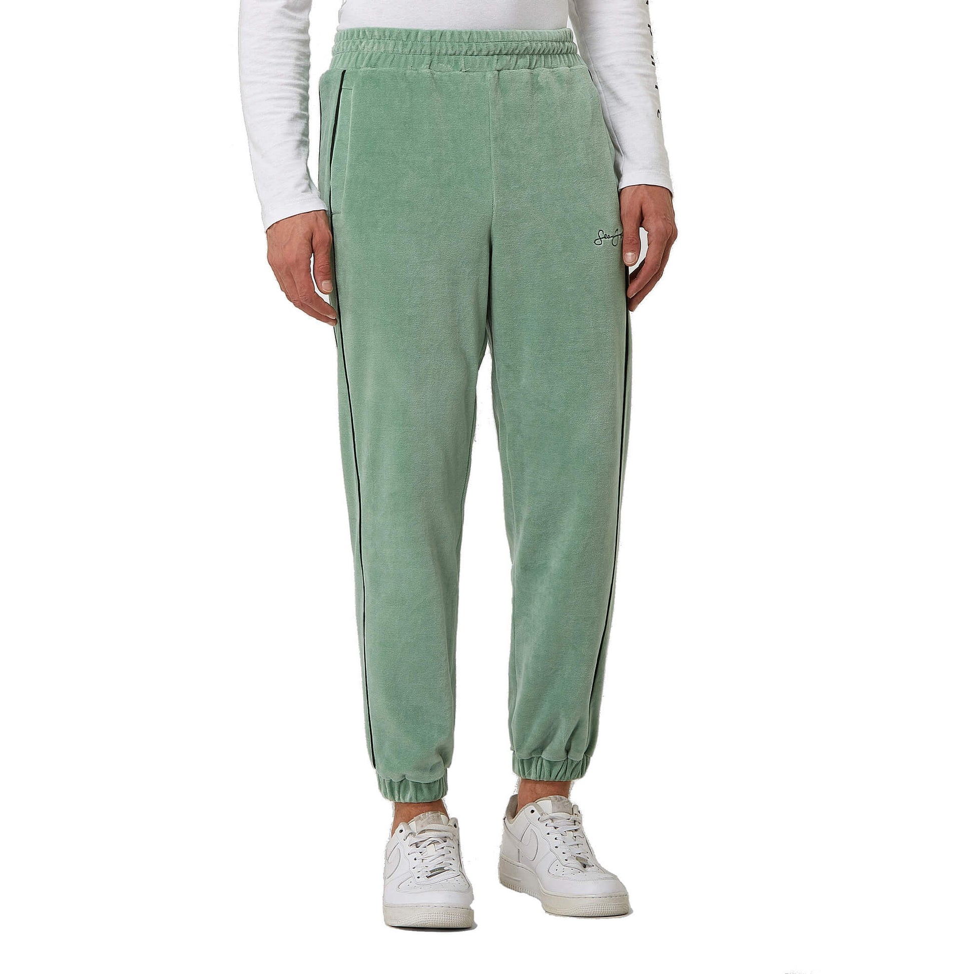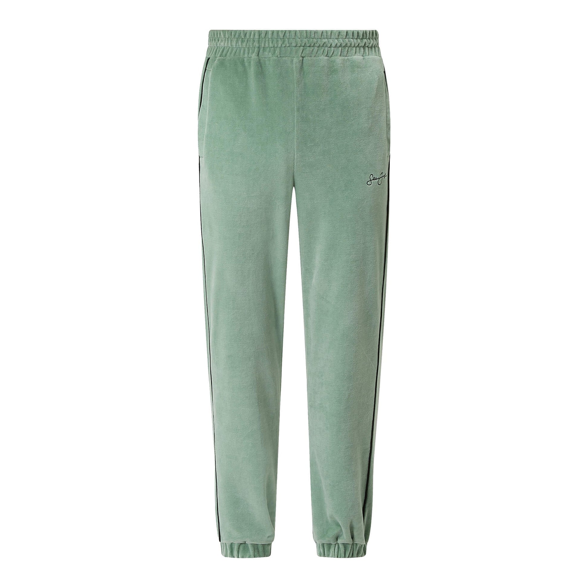 Sean John Script Logo Piping Velours Trackpants Light Green