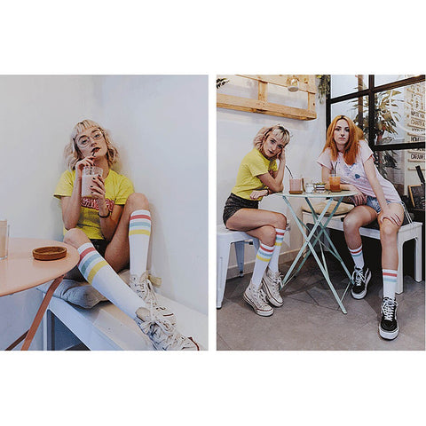 American Socks Vice City - Mid High White/Pink/Green