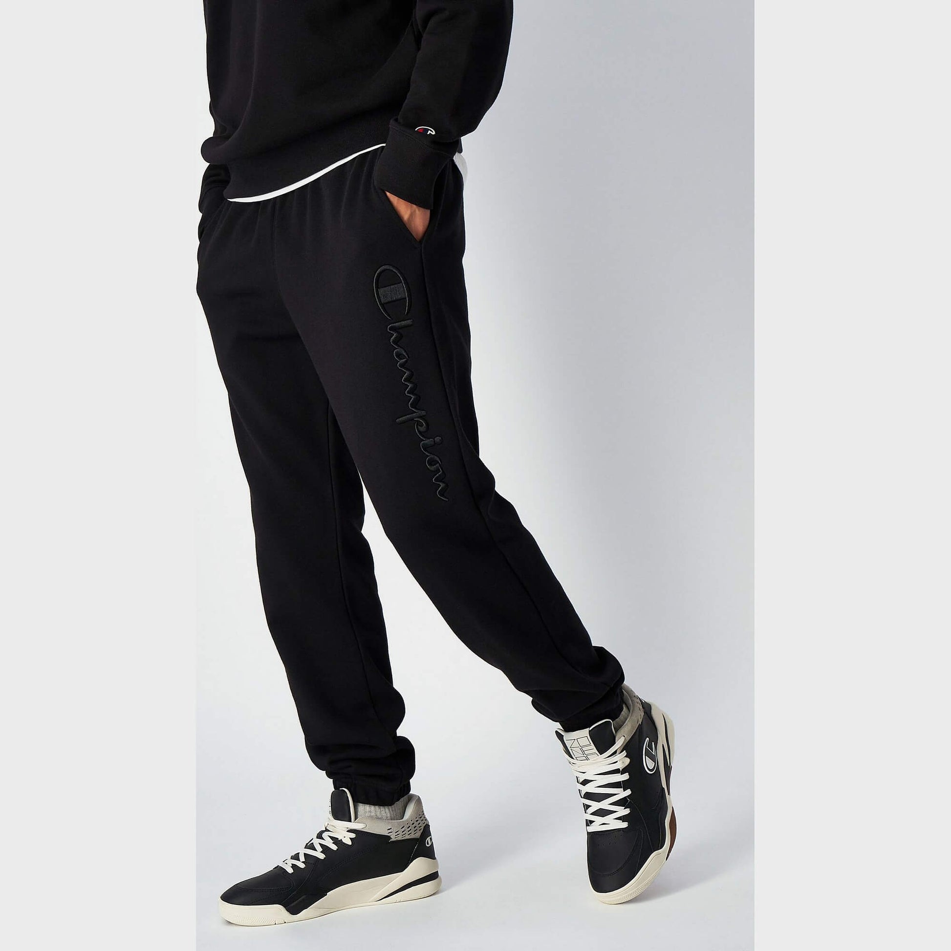 Champion Logo Rib Cuff Pants Black