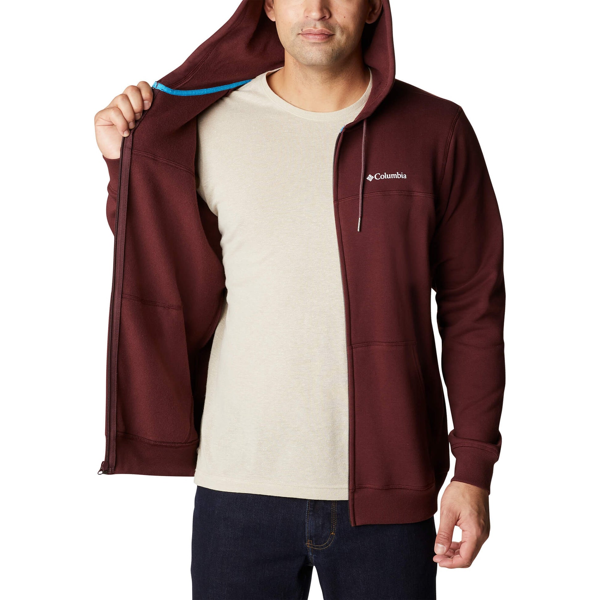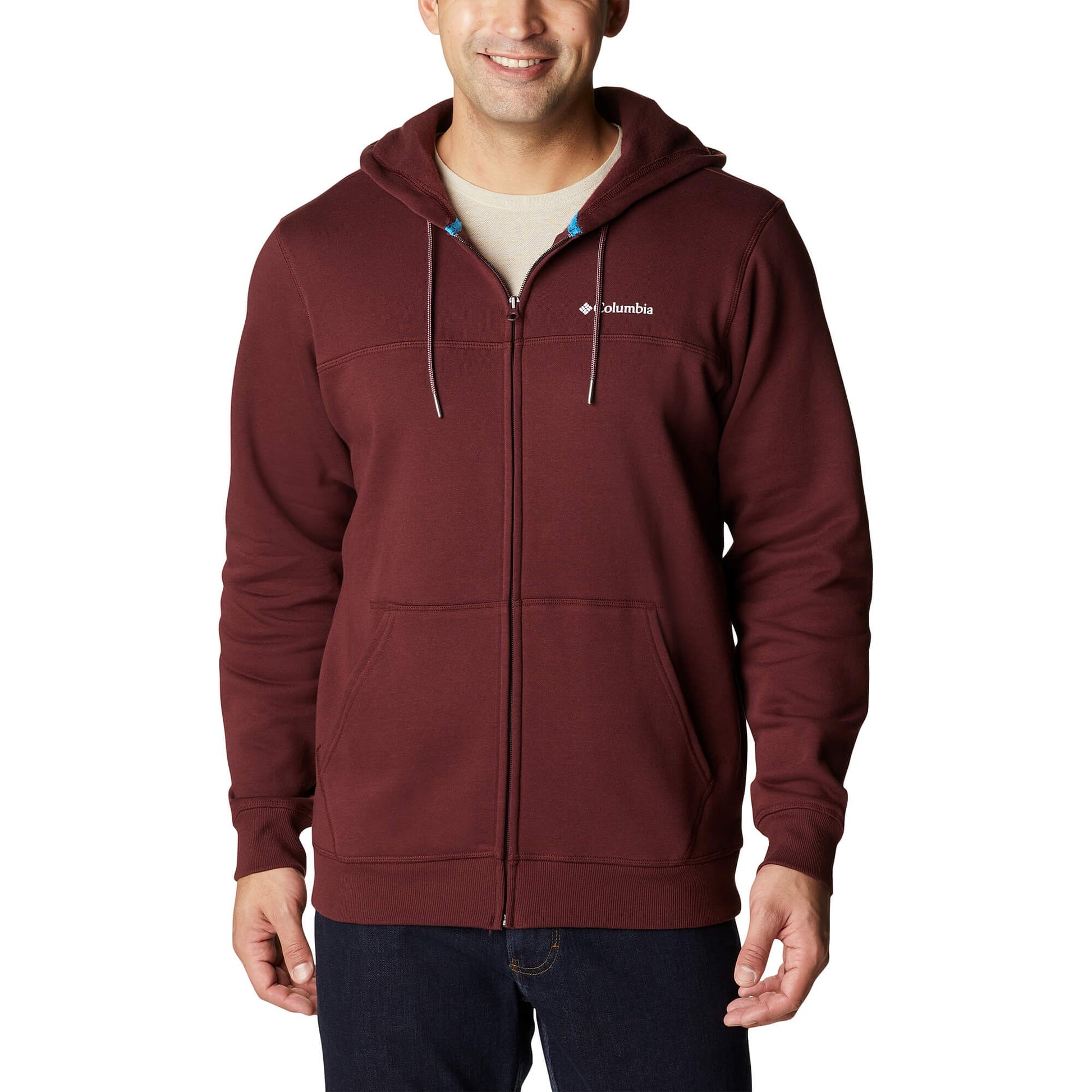 Mikina na zips s kapucňou Columbia™ Logo Fleece FZ bordová