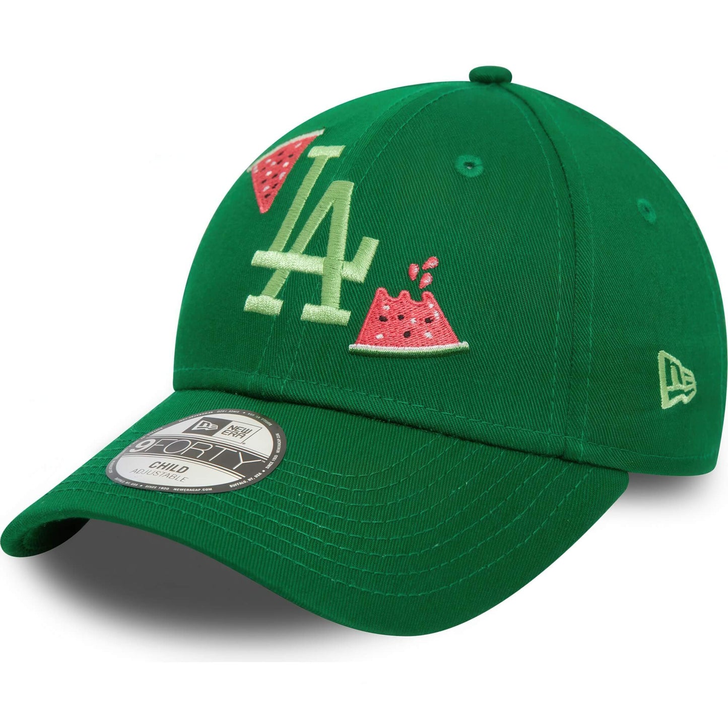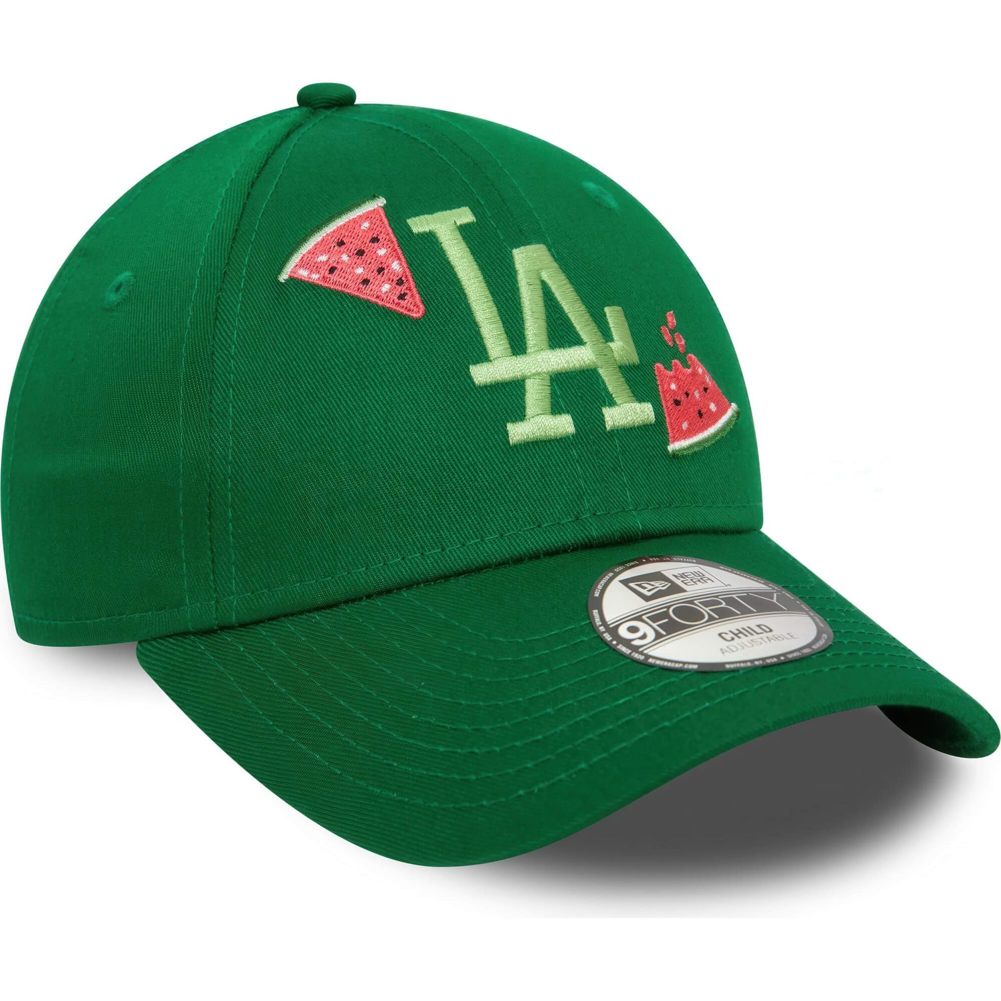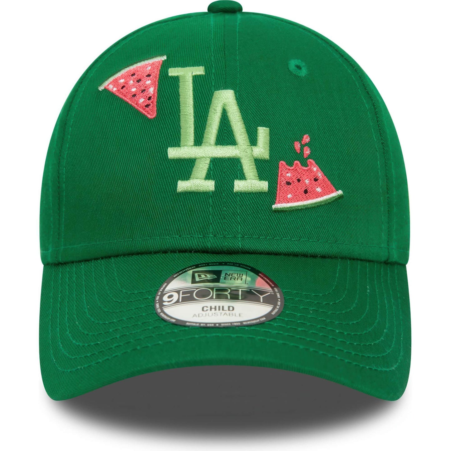 Detská zelená šiltovka značky New Era s motívom bejzbalového klubu Los Angeles Dodgers a výšivkou melónu. Nastaviteľná veľkosť. Oficiálny licencovaný produkt MLB.