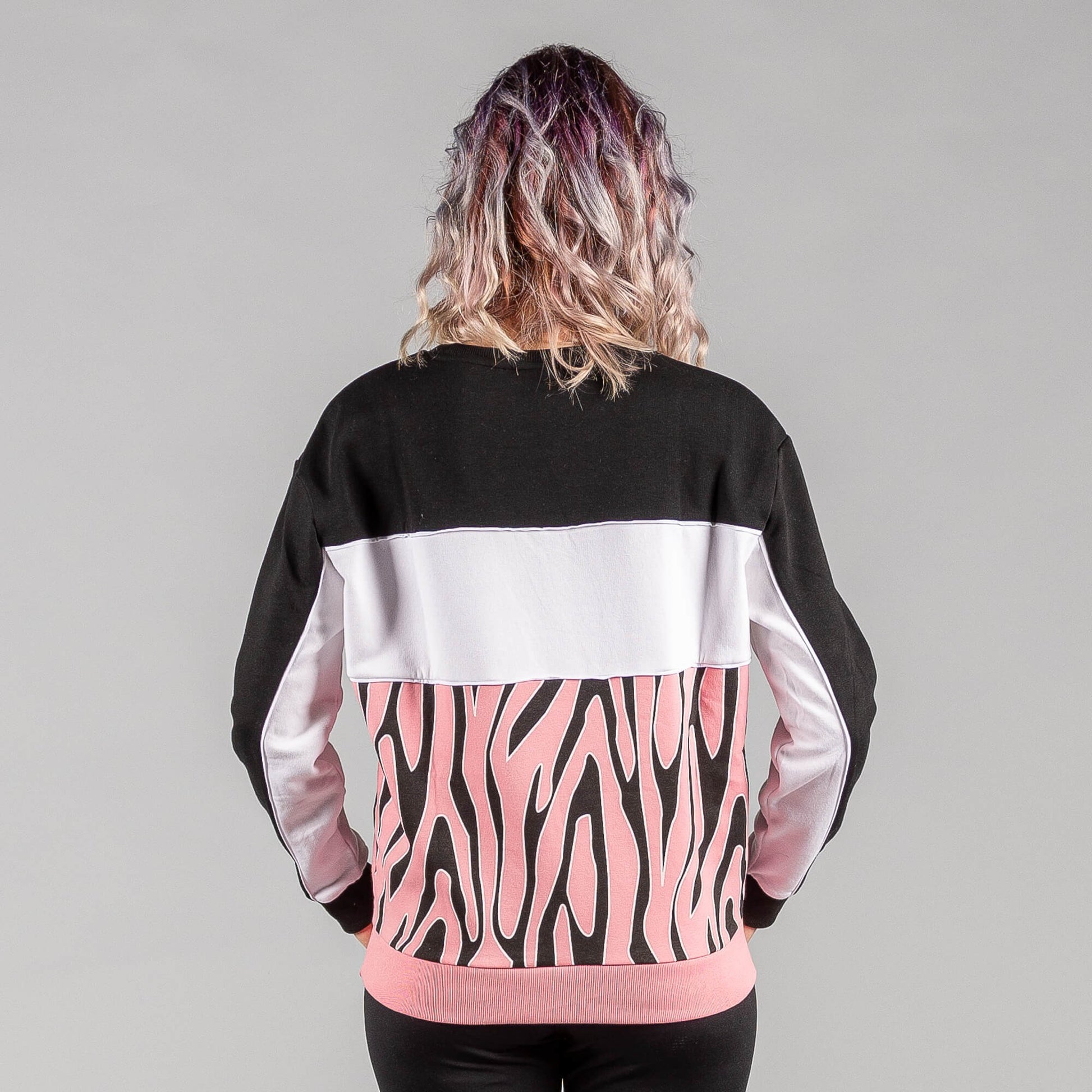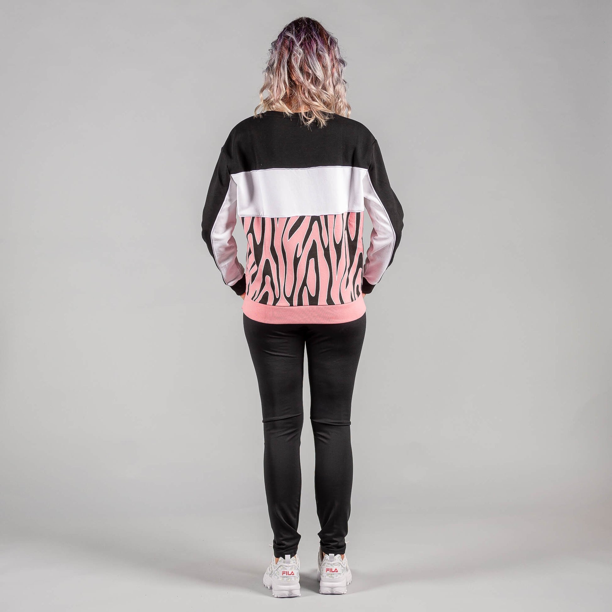 Fila EMERIN blocked crew sweat black-peony allover-bright white