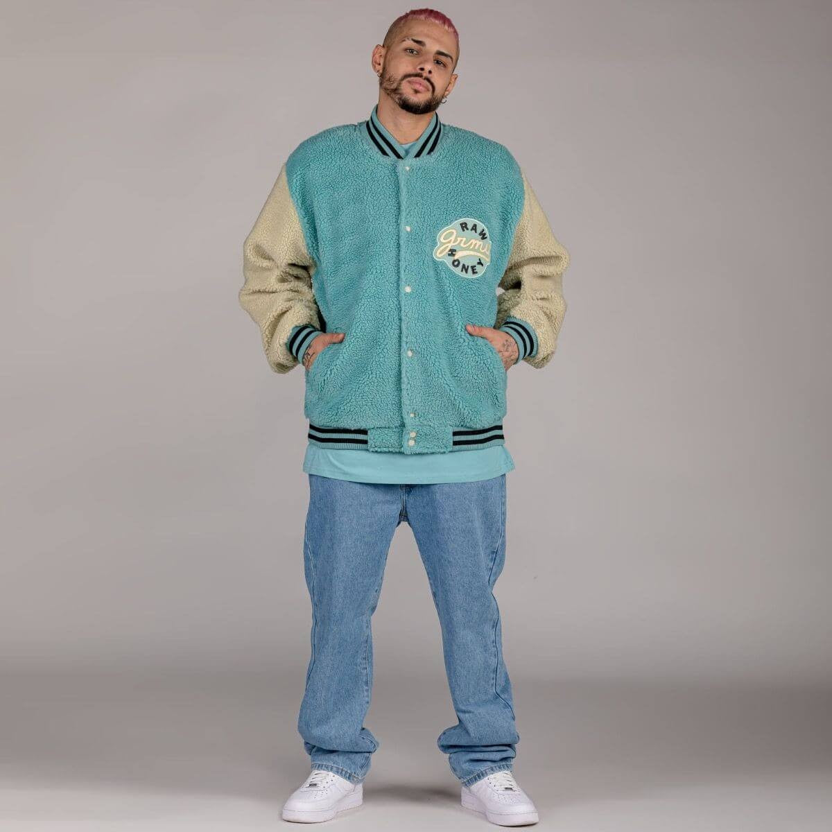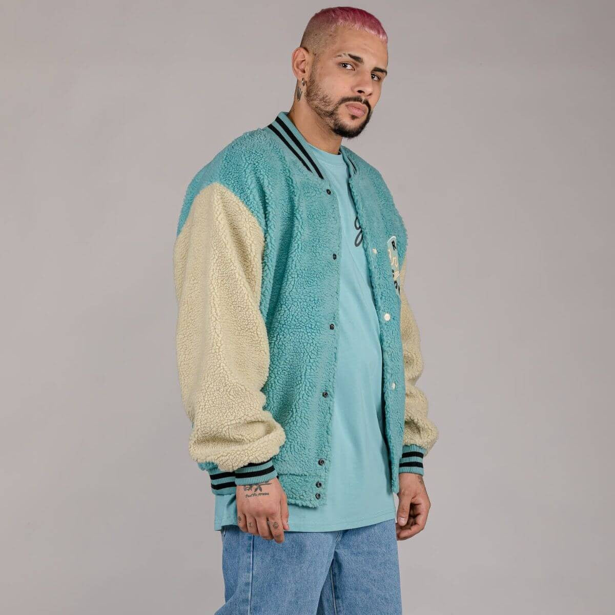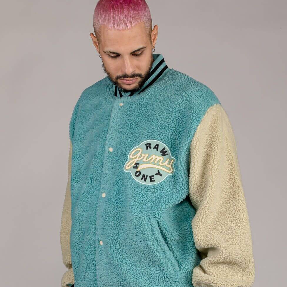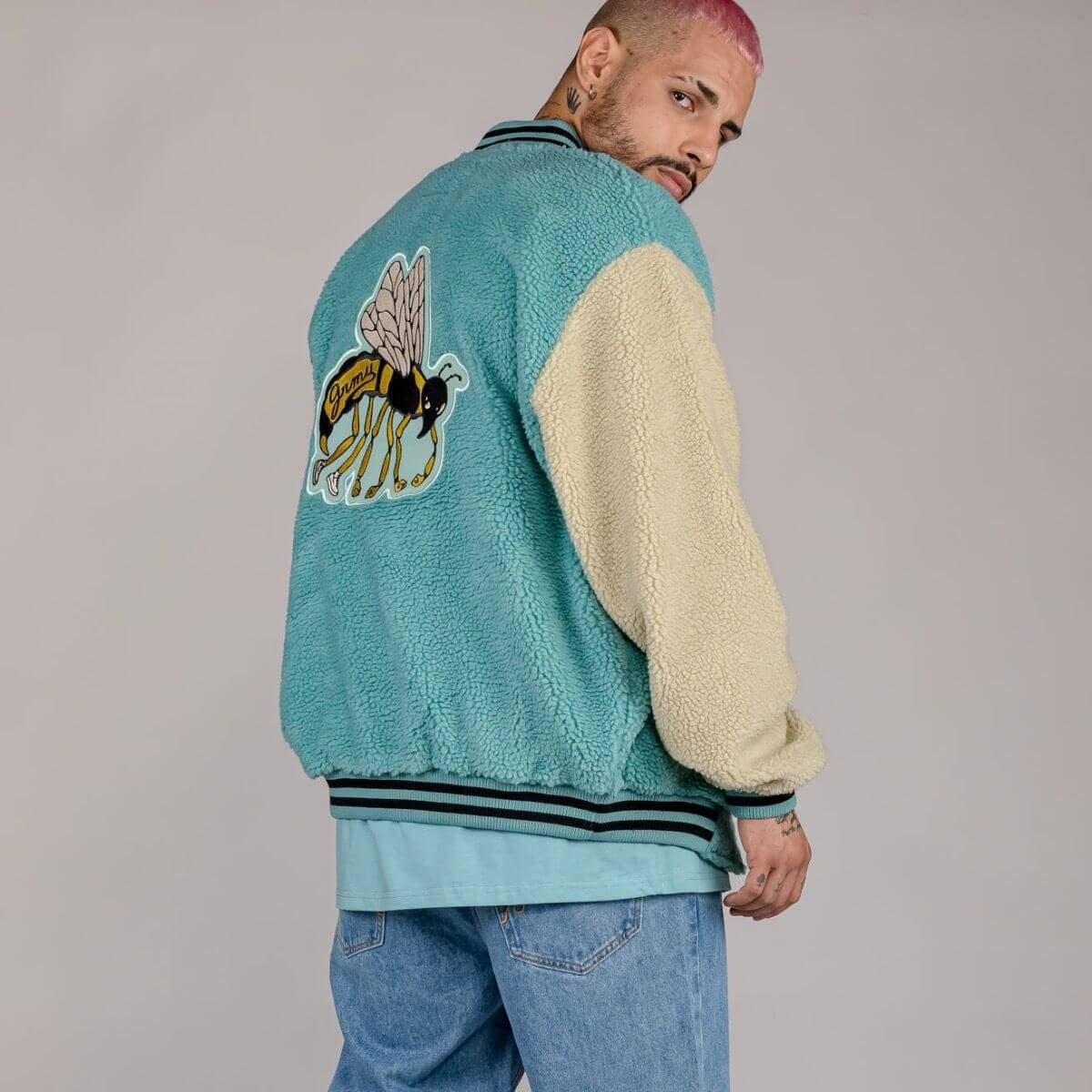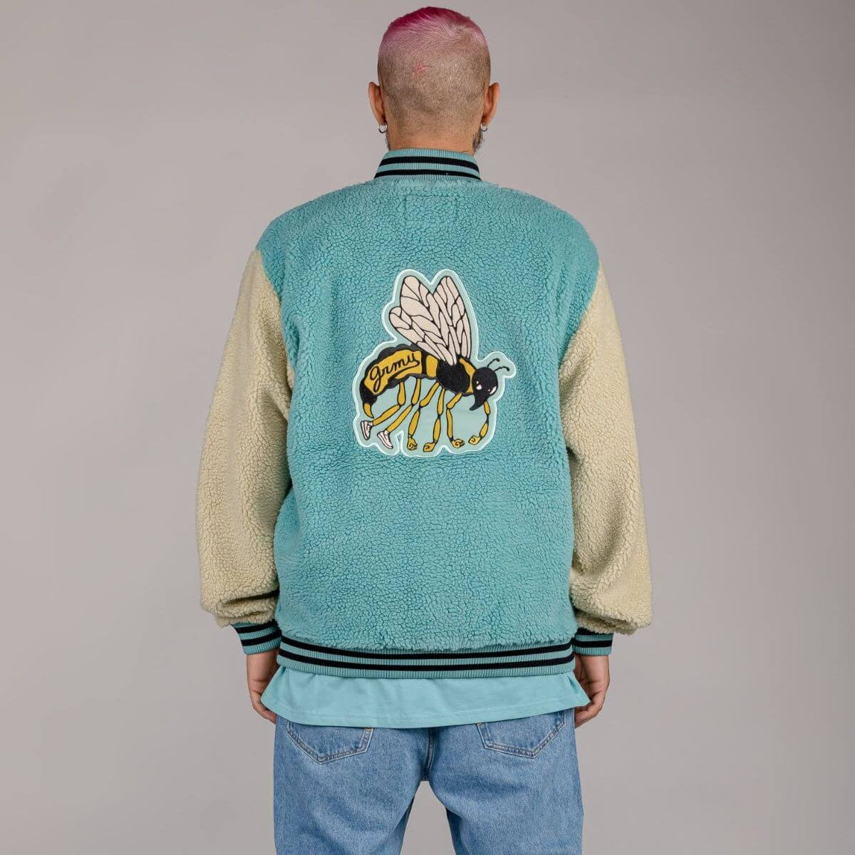 Bunda na patentky sherpa flis Grimey Wear Hive Button Sweatshirt tyrkysová zelená