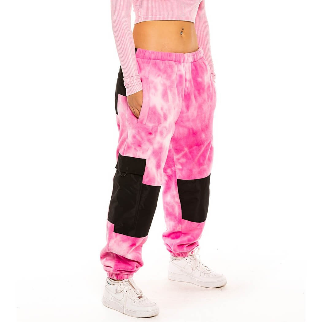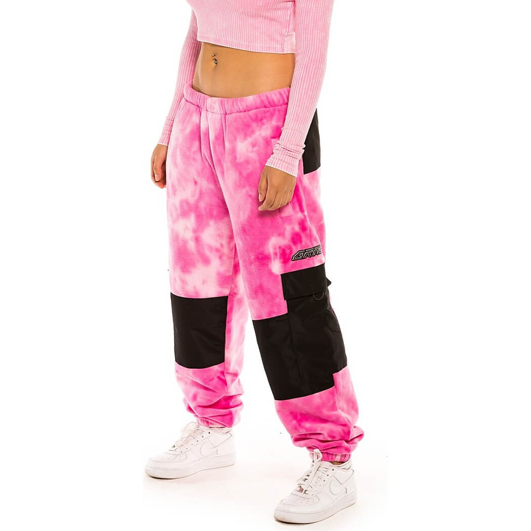 GRIMEY WEAR SPACE LADY GIRL POLAR FLEECE BLEACHED PANTS BLEACHED PINK