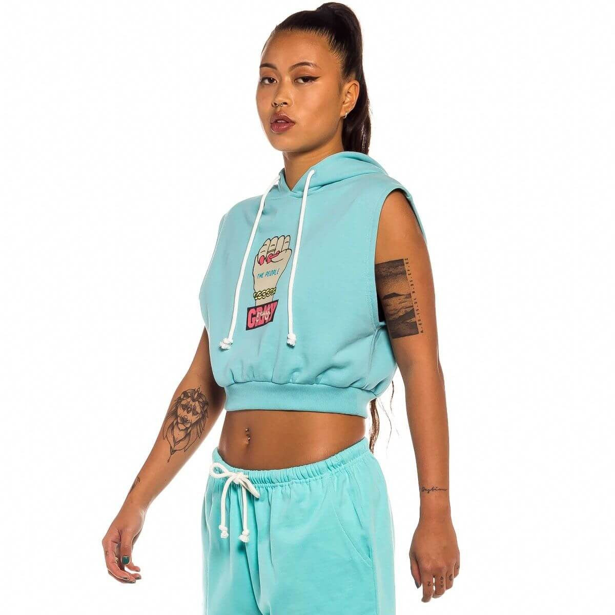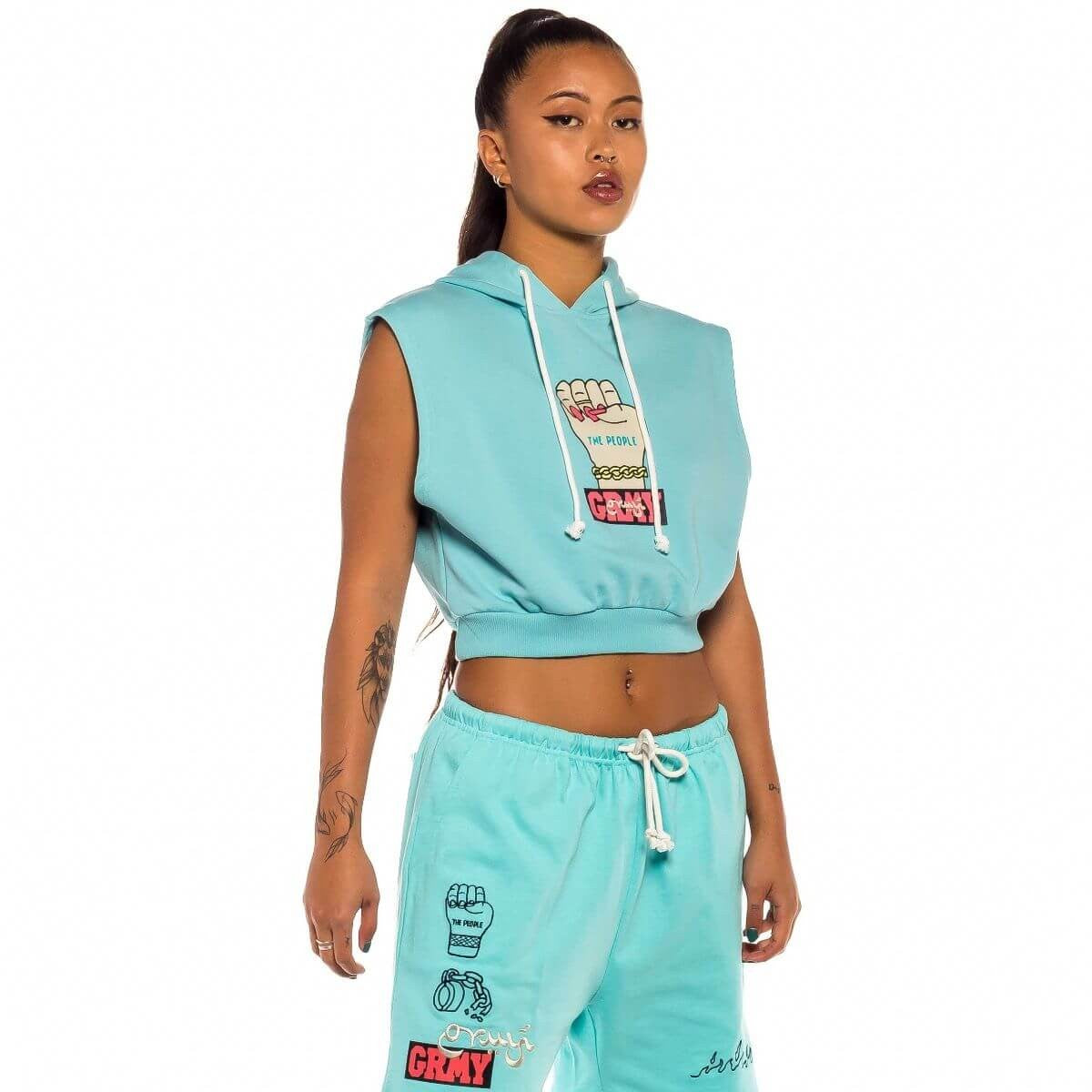 GRMY GRIMEY WEAR DAY DREAMER GIRL SLEEVELESS HOODIE BLUE
