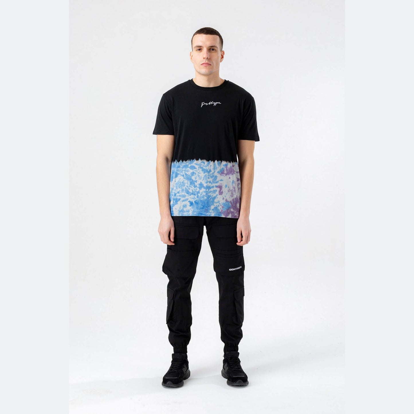 Hype Mens Blue Rush Dye Scribble T-Shirt Black
