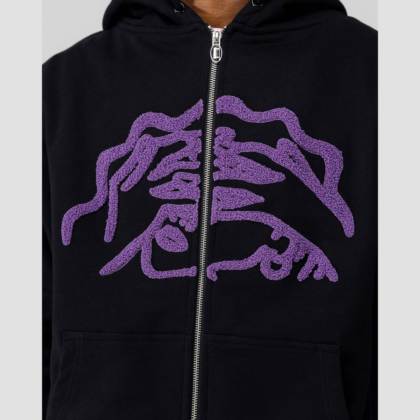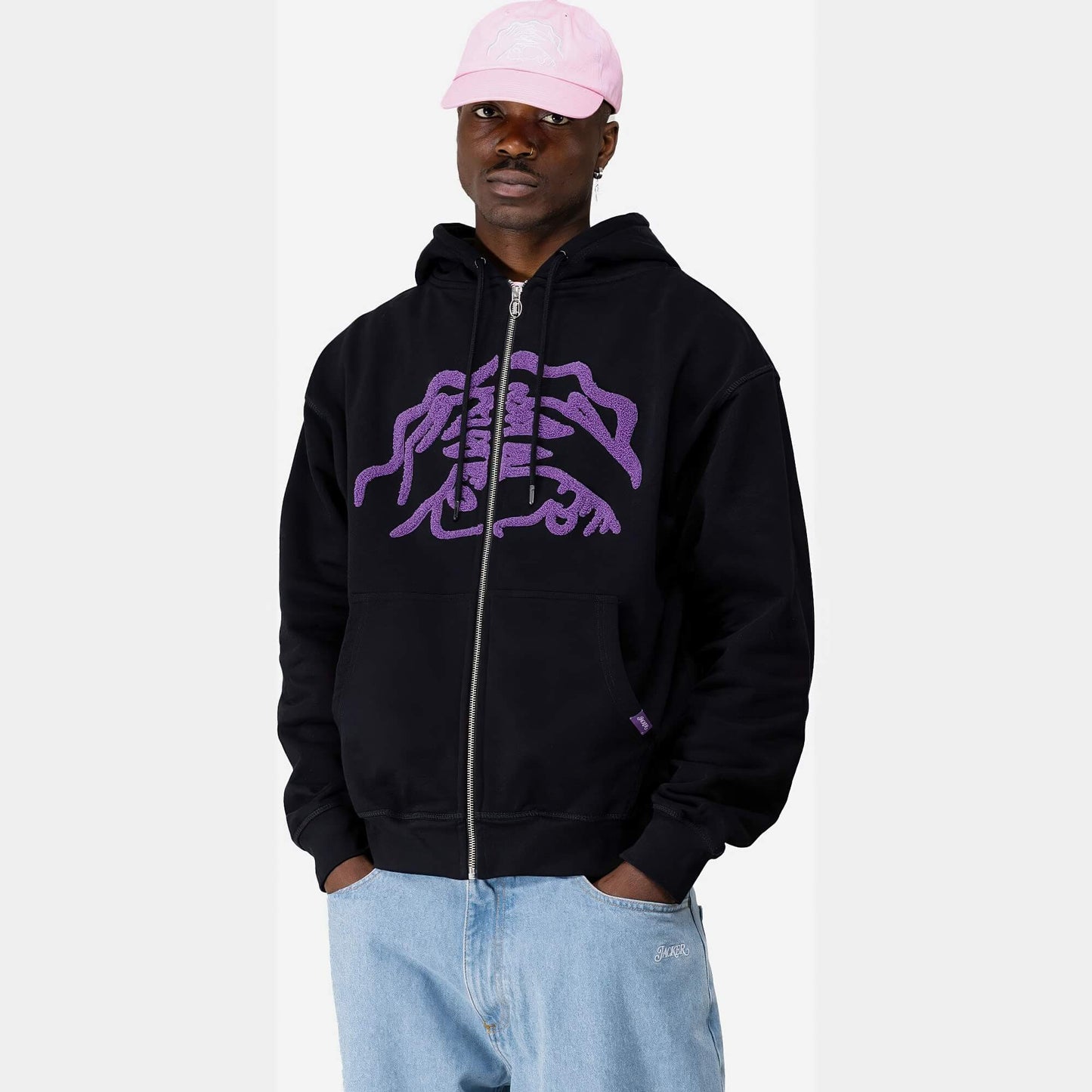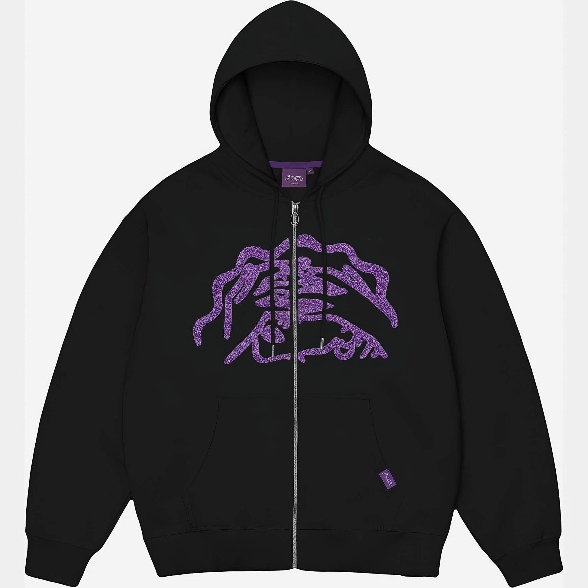Jacker Warehouse Hoodie Zip Black – mikina na zips z hrubej bavlny s "chenille" výšivkami.