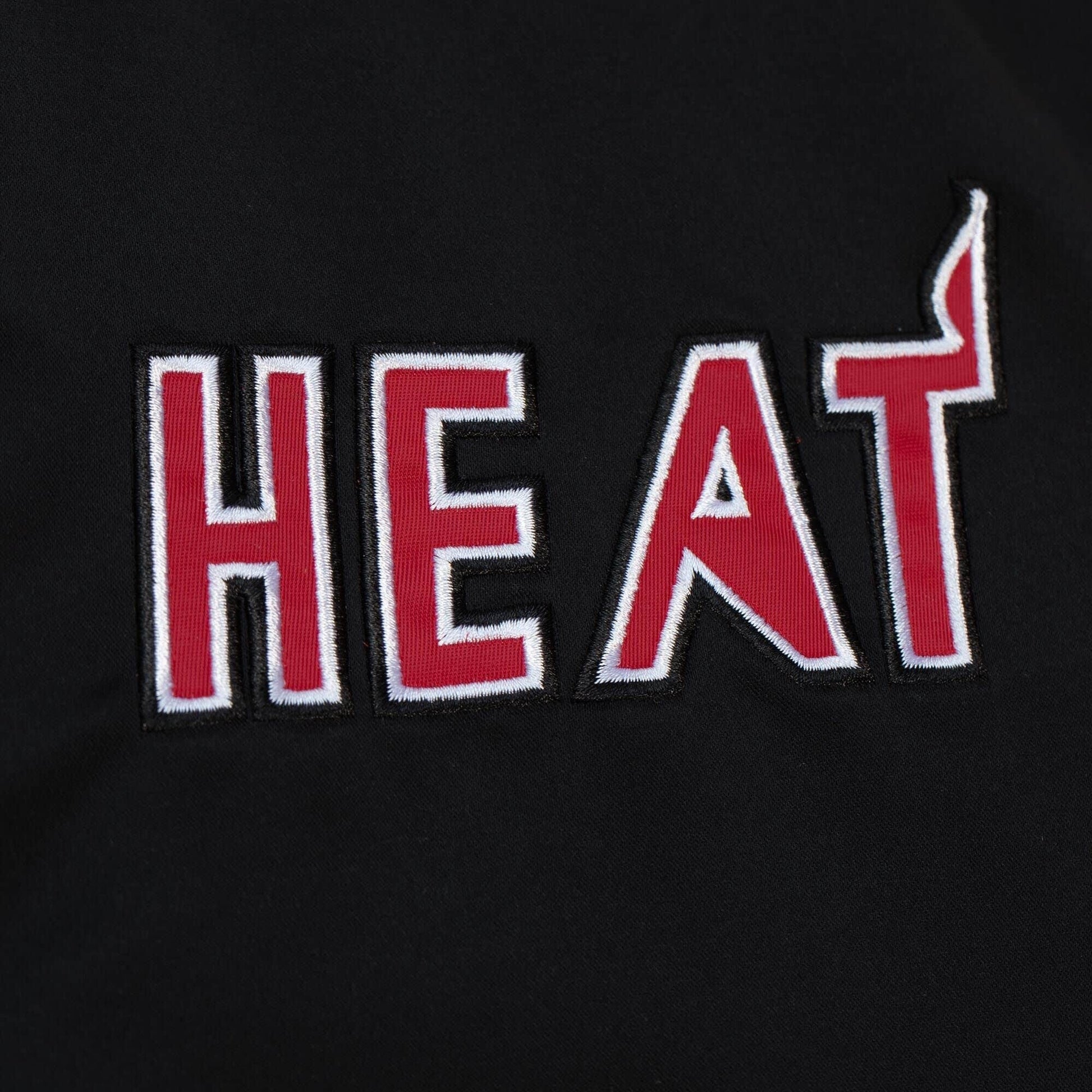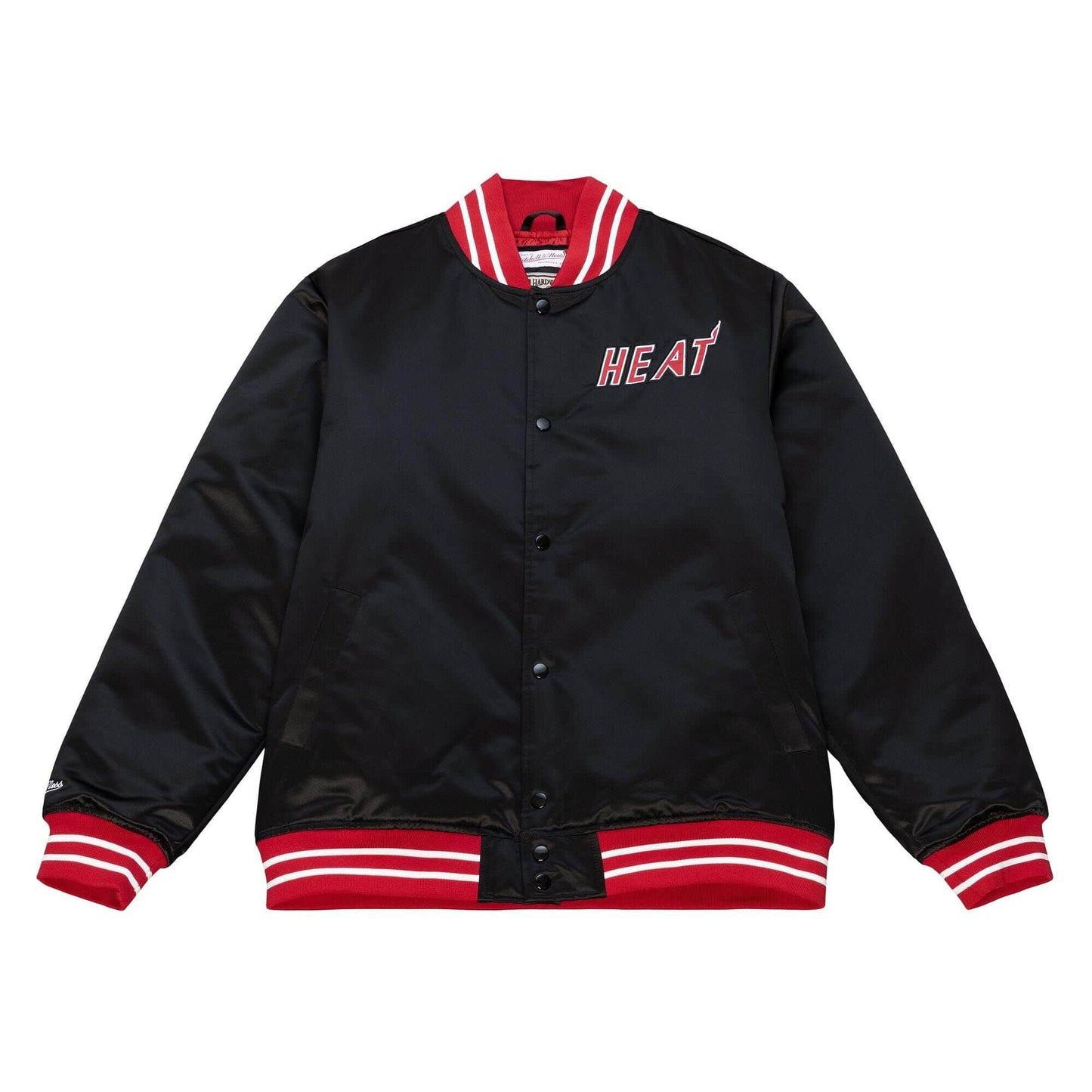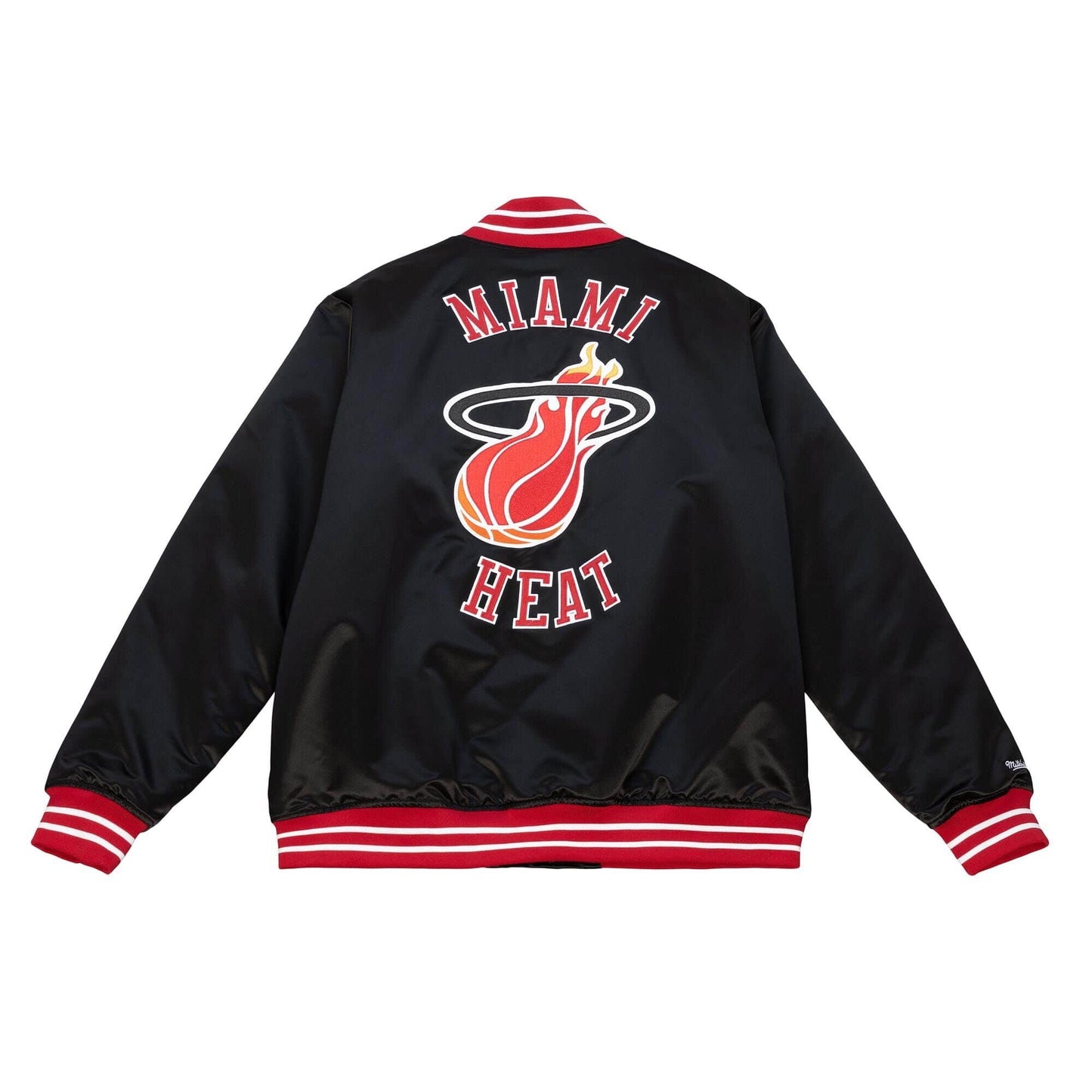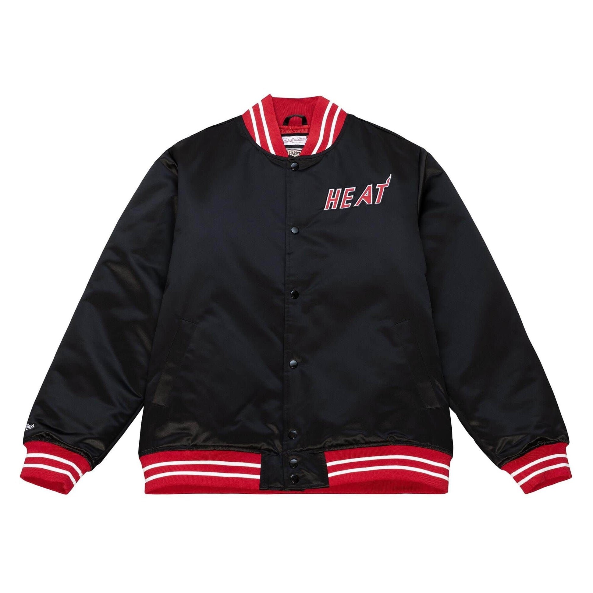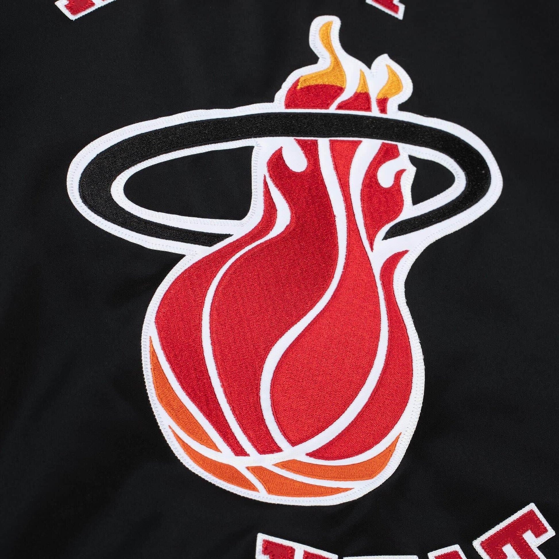 Bunda Mitchell & Ness Miami Heat je vyrobená z hrubého saténu s prešívanou polyesterovou podšívkou. Na rukávoch, prednej a zadnej strane sú vyšité vysoko efektné logá. Zapína sa na patentky.
