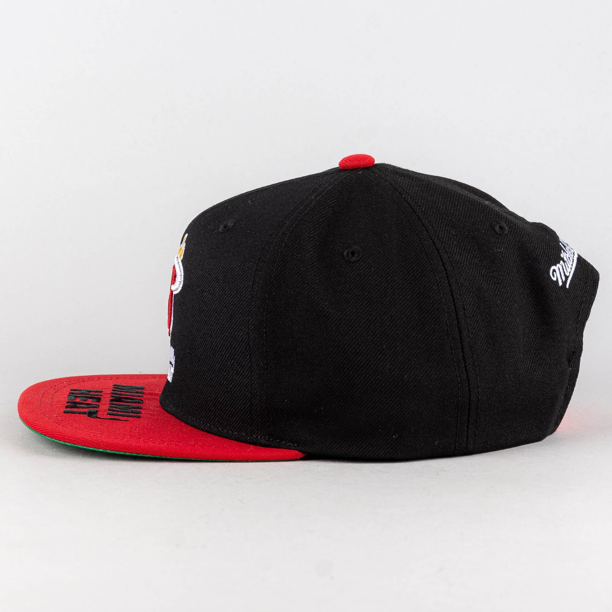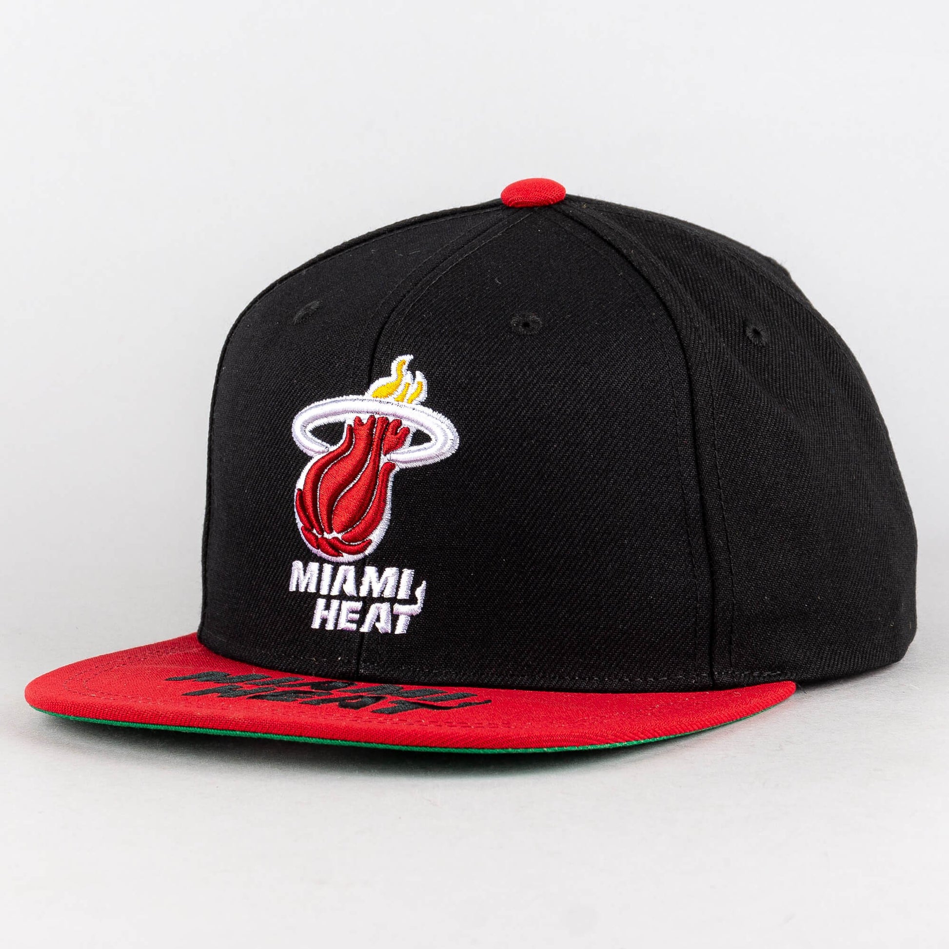 Čierna šiltovka s rovným šiltom značky Mitchell & Ness s motívom basketbalového tímu Miami Heat. Edícia Hardwood Classics. Nastaviteľná veľkosť snapback. Oficiálne licencovaný produkt NBA.