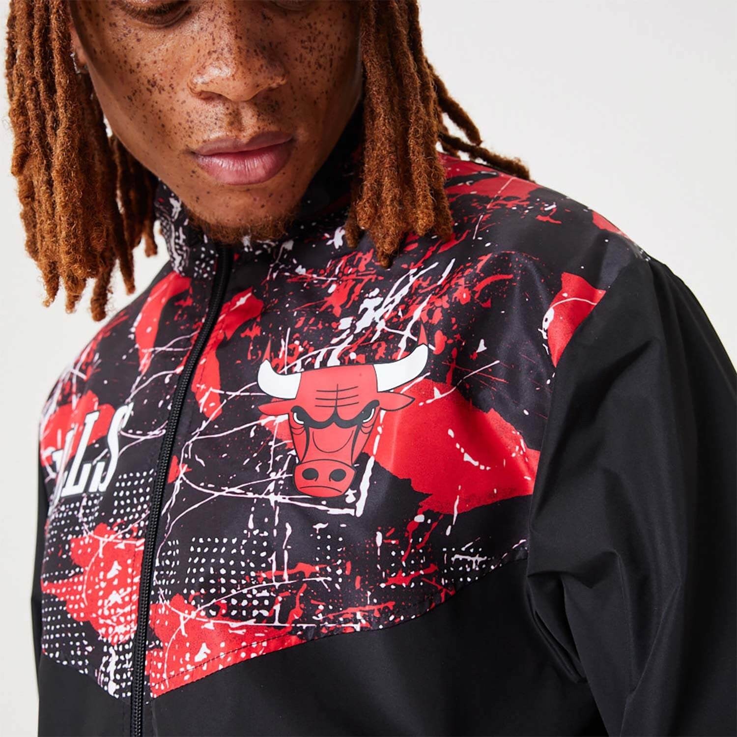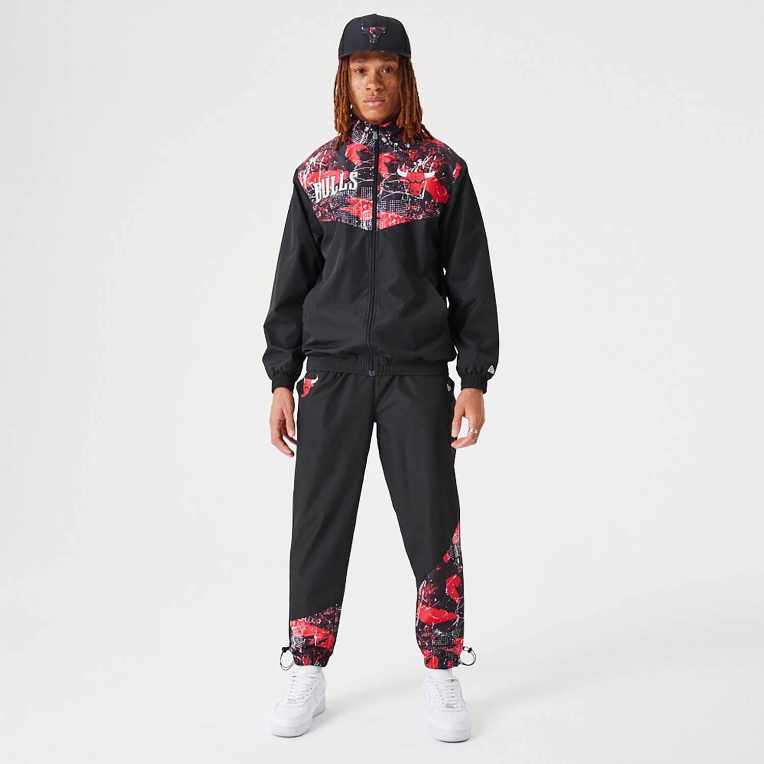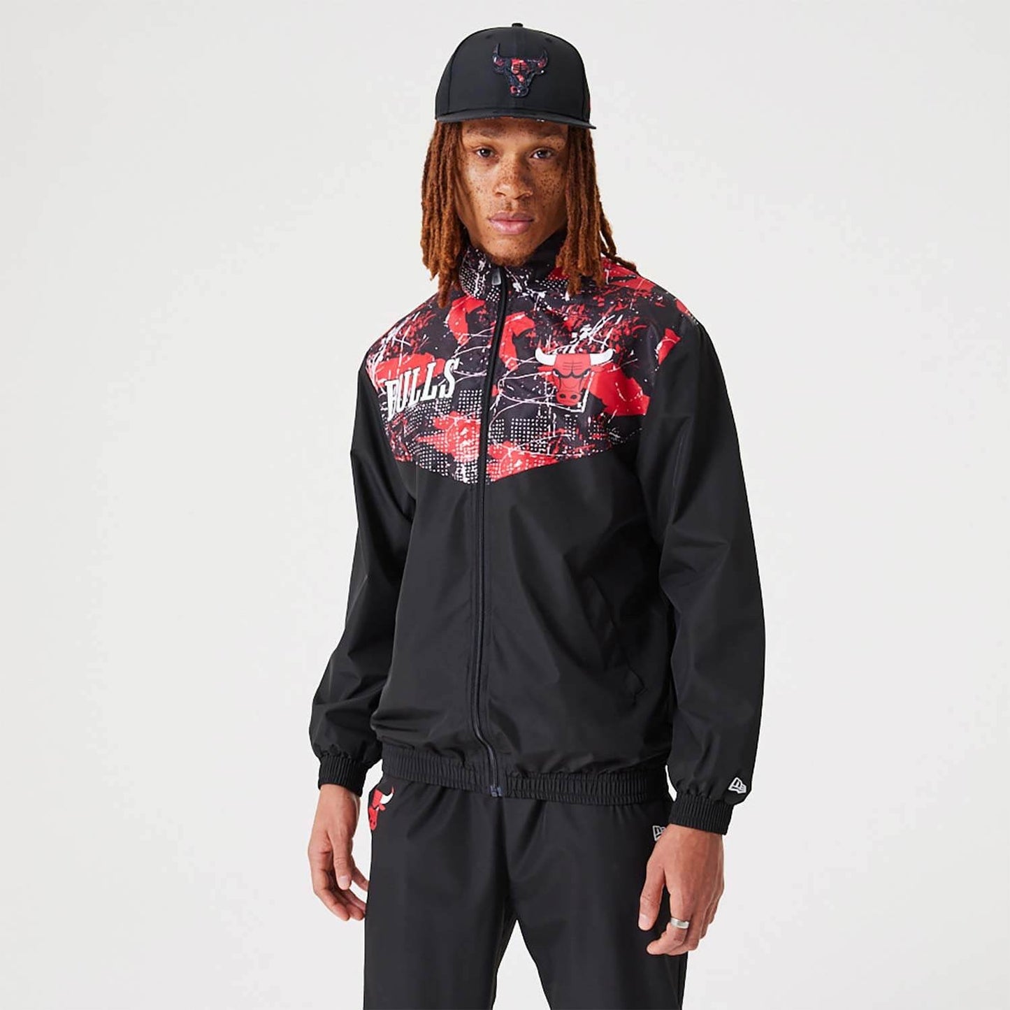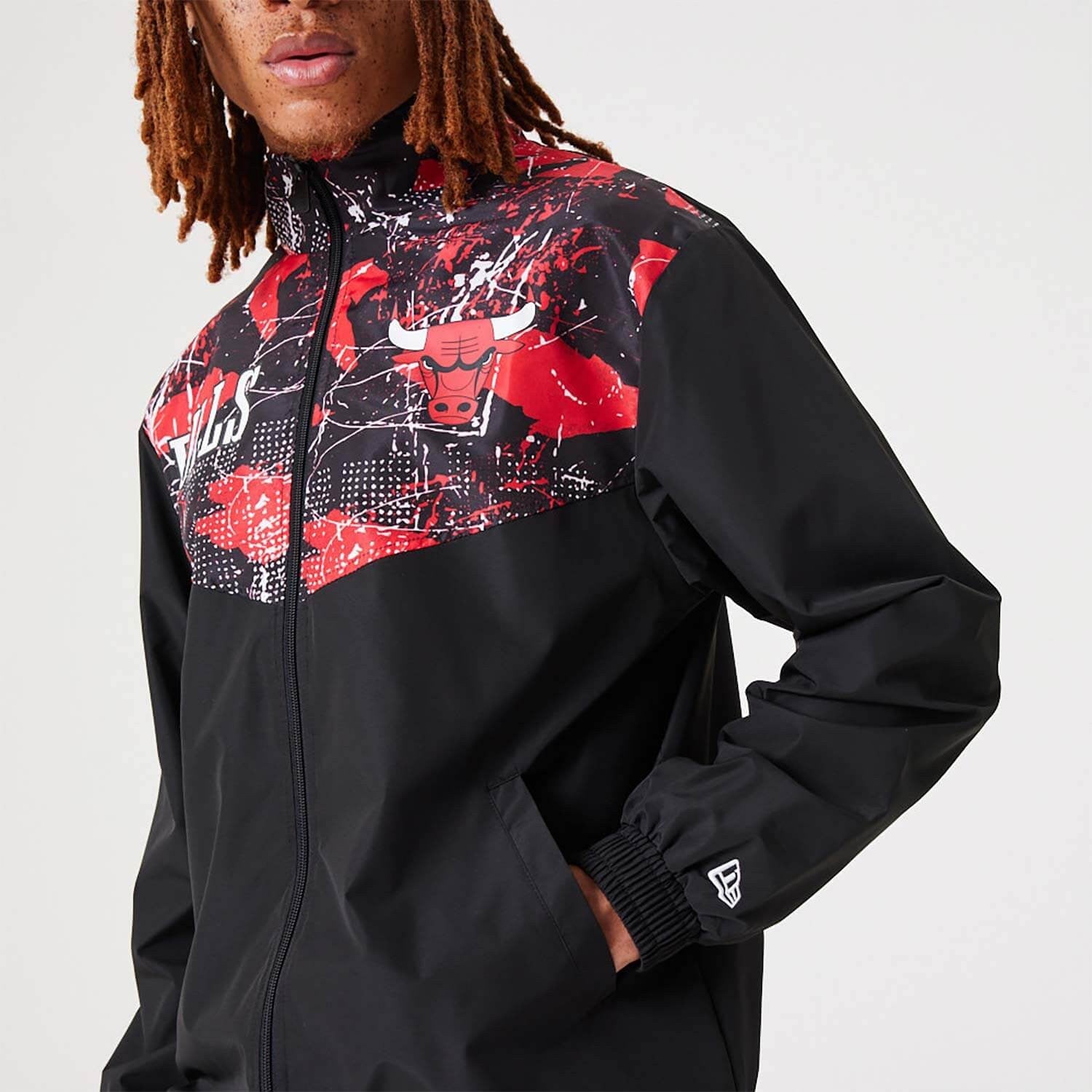 • Oficiálna čierna tepláková bunda New Era NBA s celoplošnou potlačou Chicago Bulls