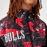 Ľahká bunda Chicago Bulls NBA s celoplošnou potlačou a čiernym základom.