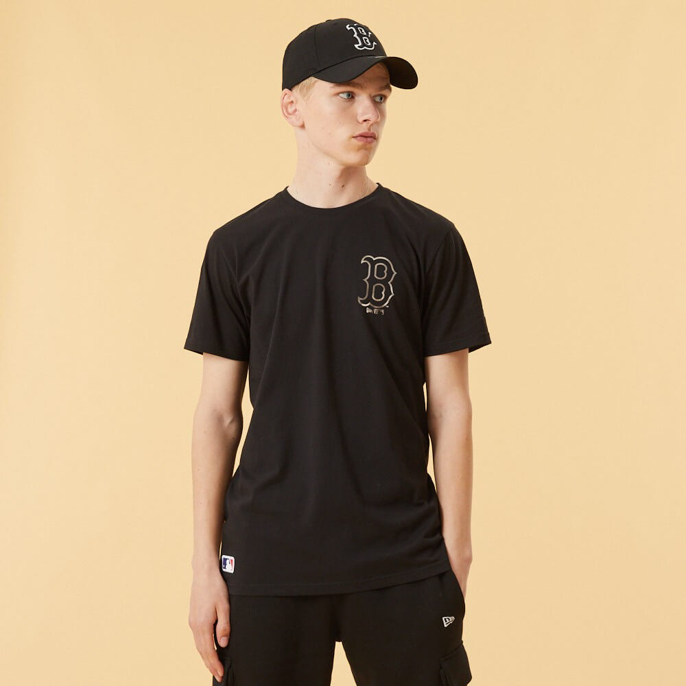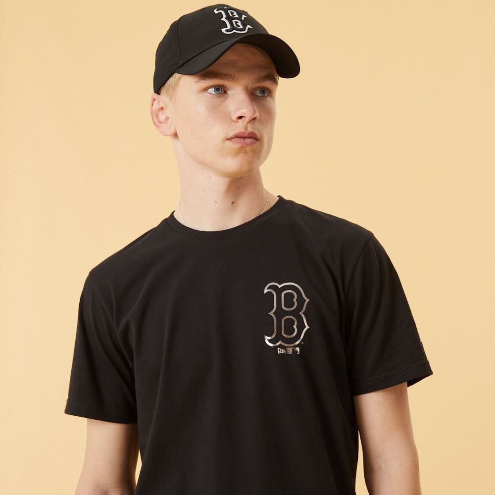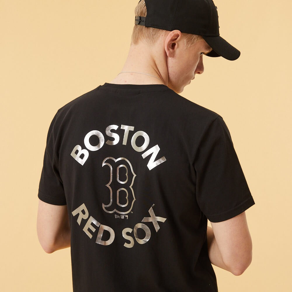NEW ERA tričko MLB Team logo metallic print tee BOSRED BOSTON RED SOX Black