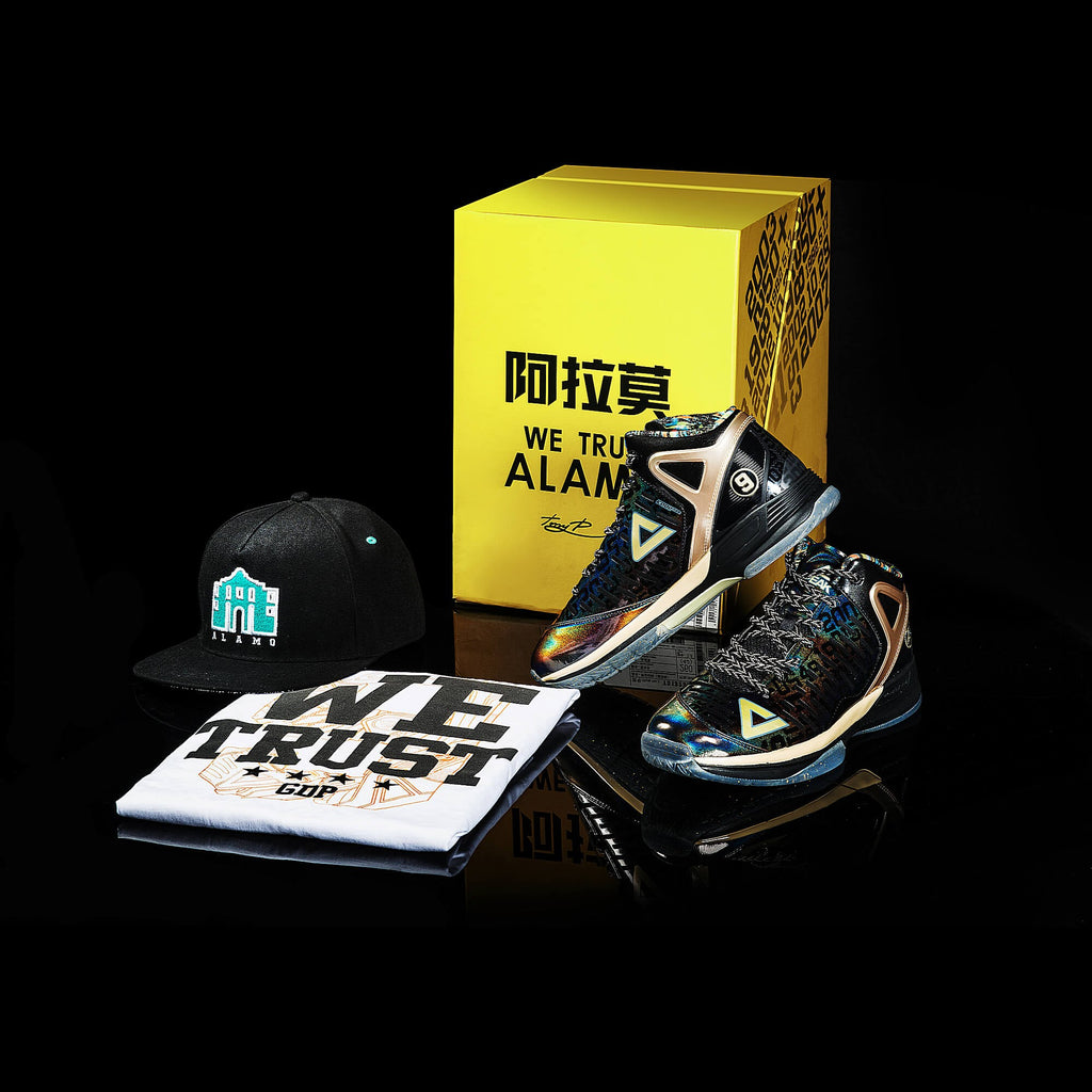Signature tenisky hviezdy NBA Tonyho Parkera. Limitovaný darčekový set "Alamo". Darčekový box obsahuje profesionálne tenisky v špeciálnom prevedení Alamo, ďalej tričko a šiltovku.