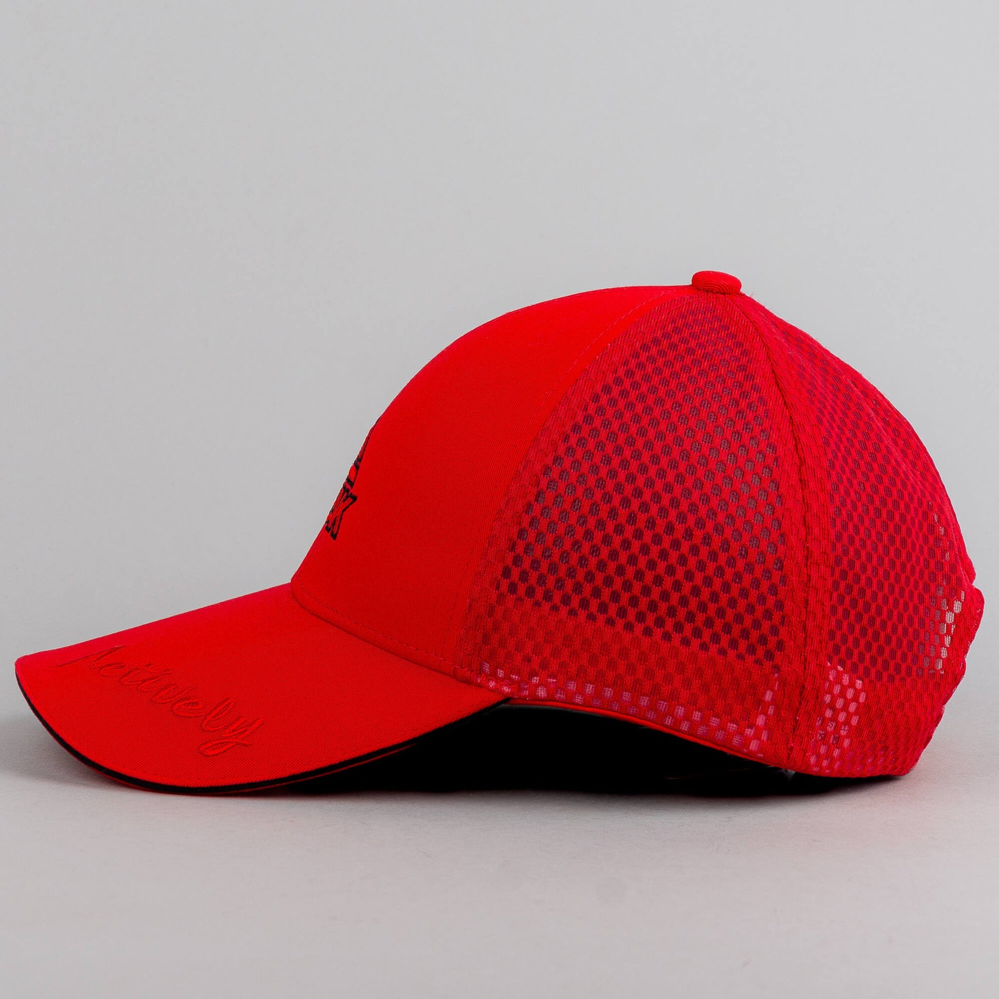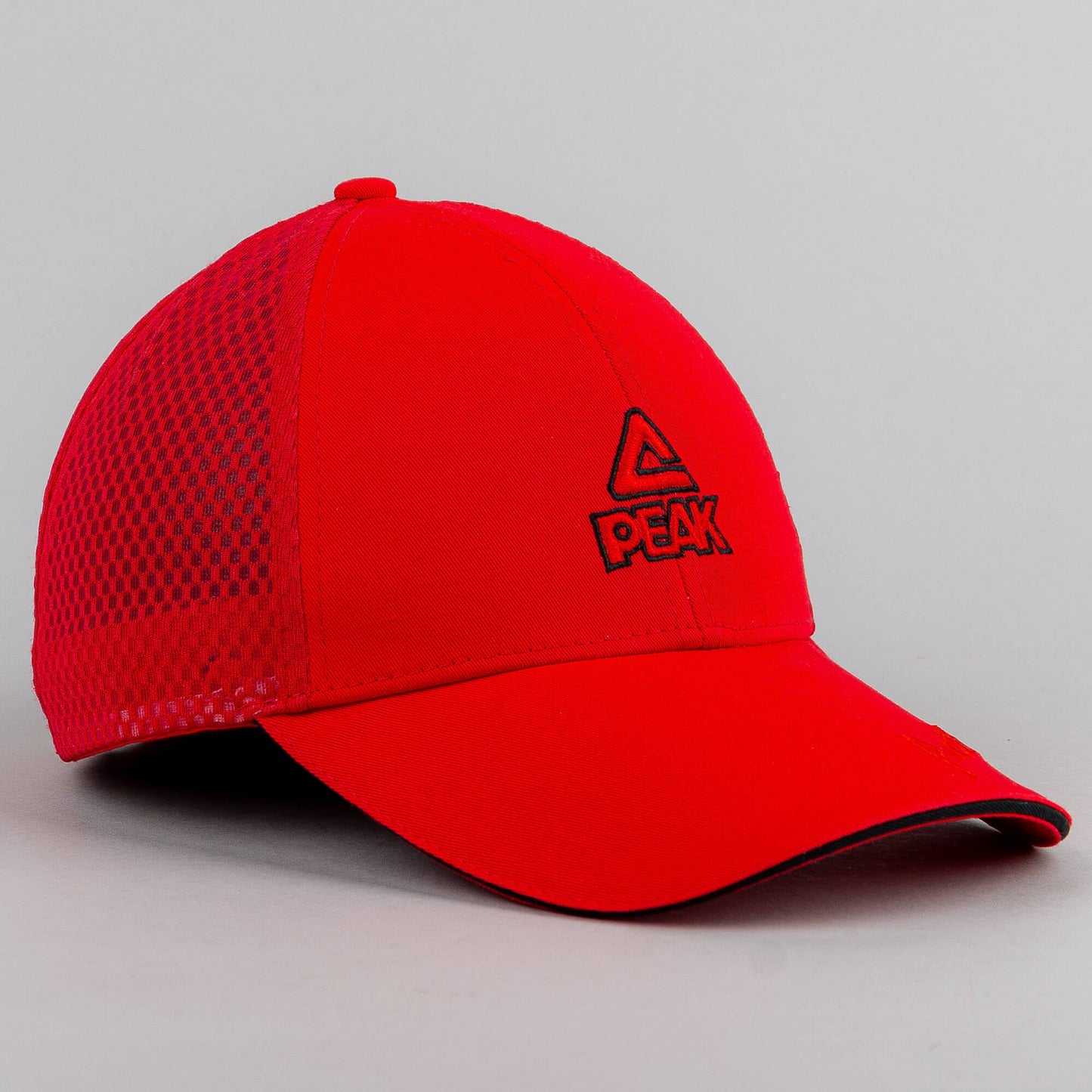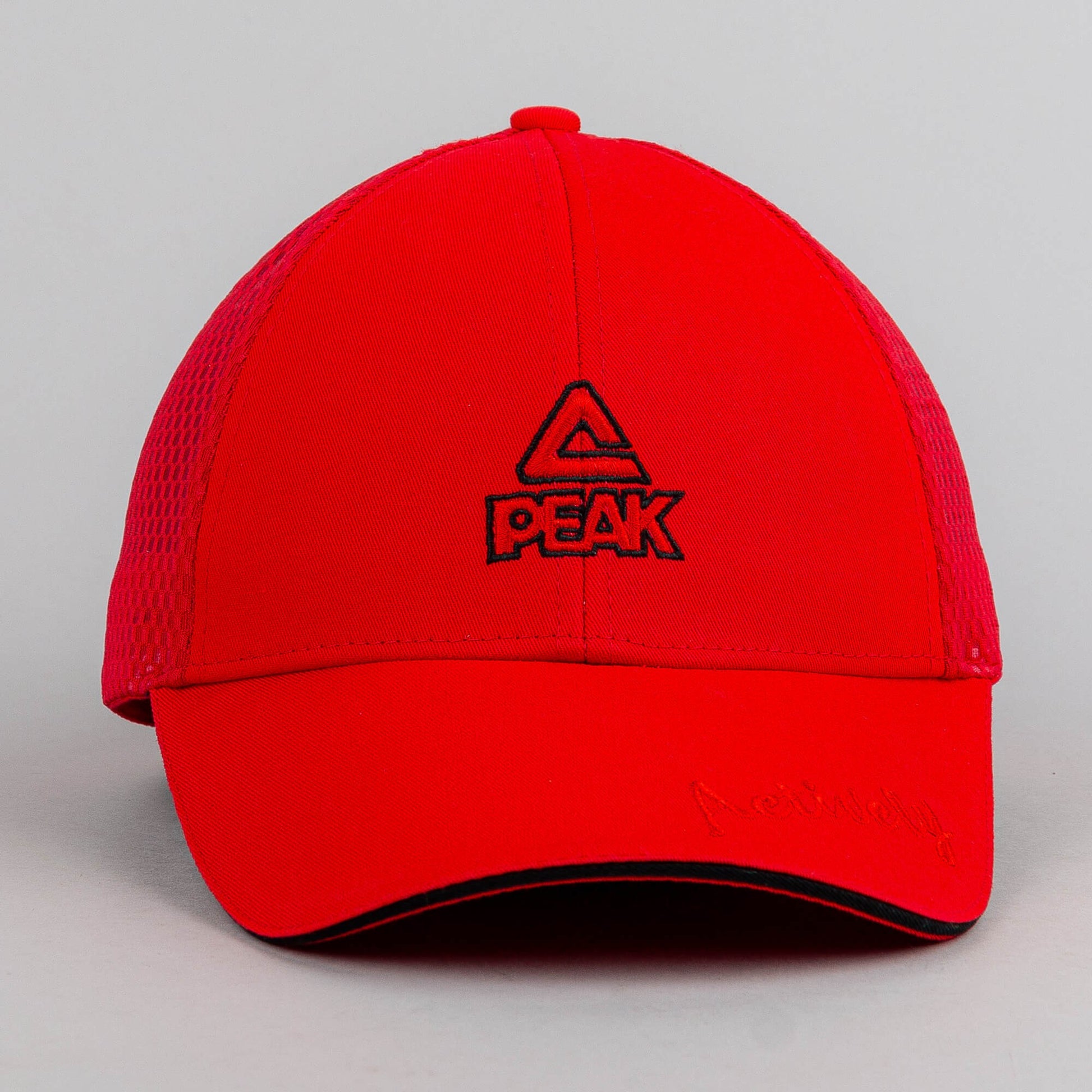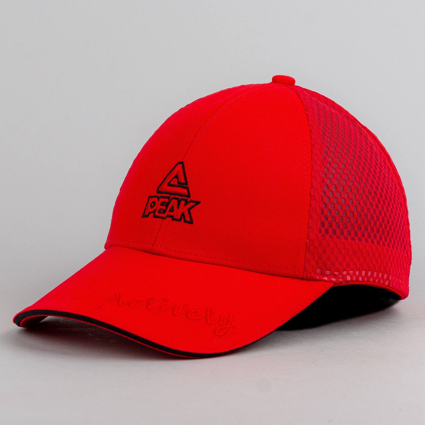 Červená šiltovka z kolekcie Peak sport so sieťkou v zadnej časti.