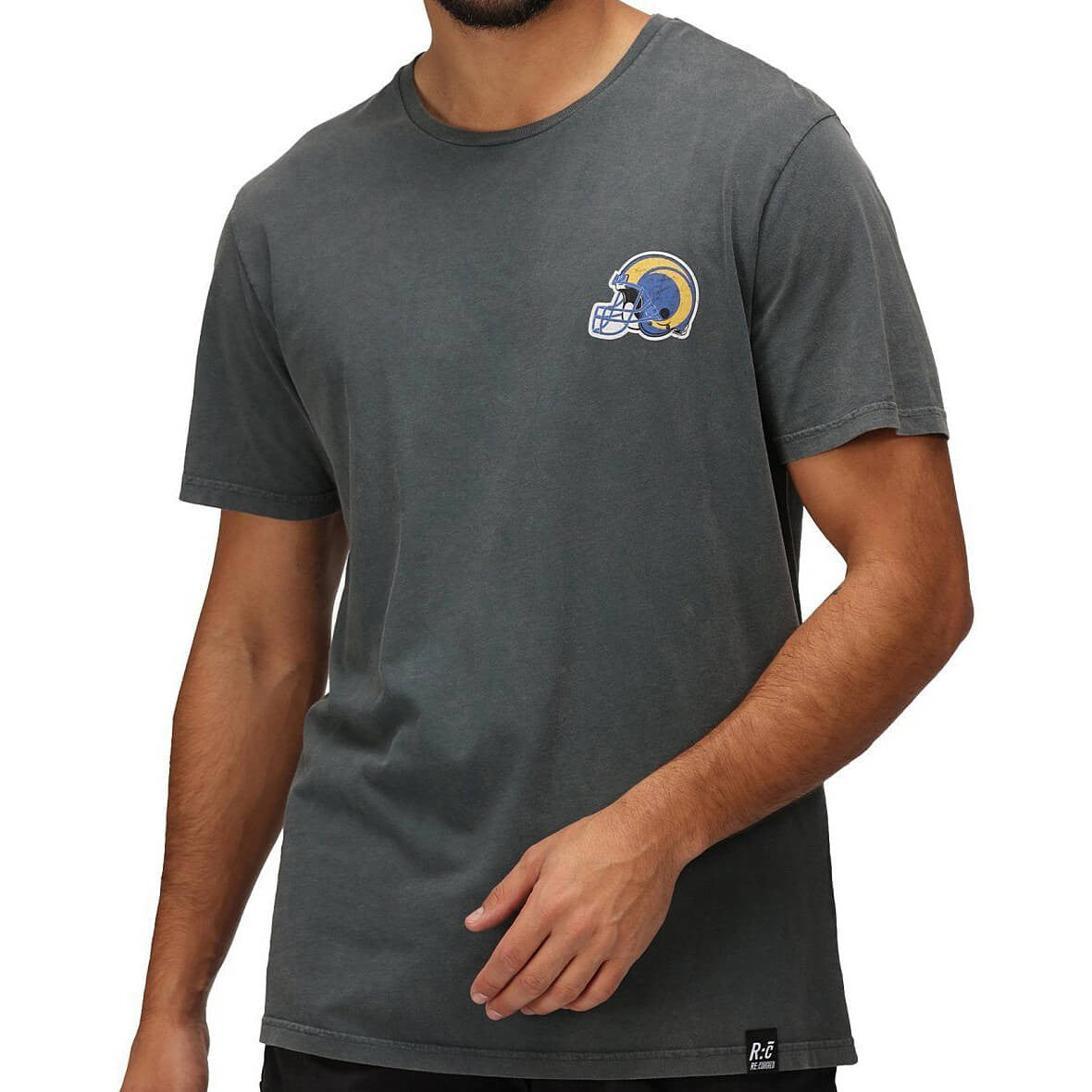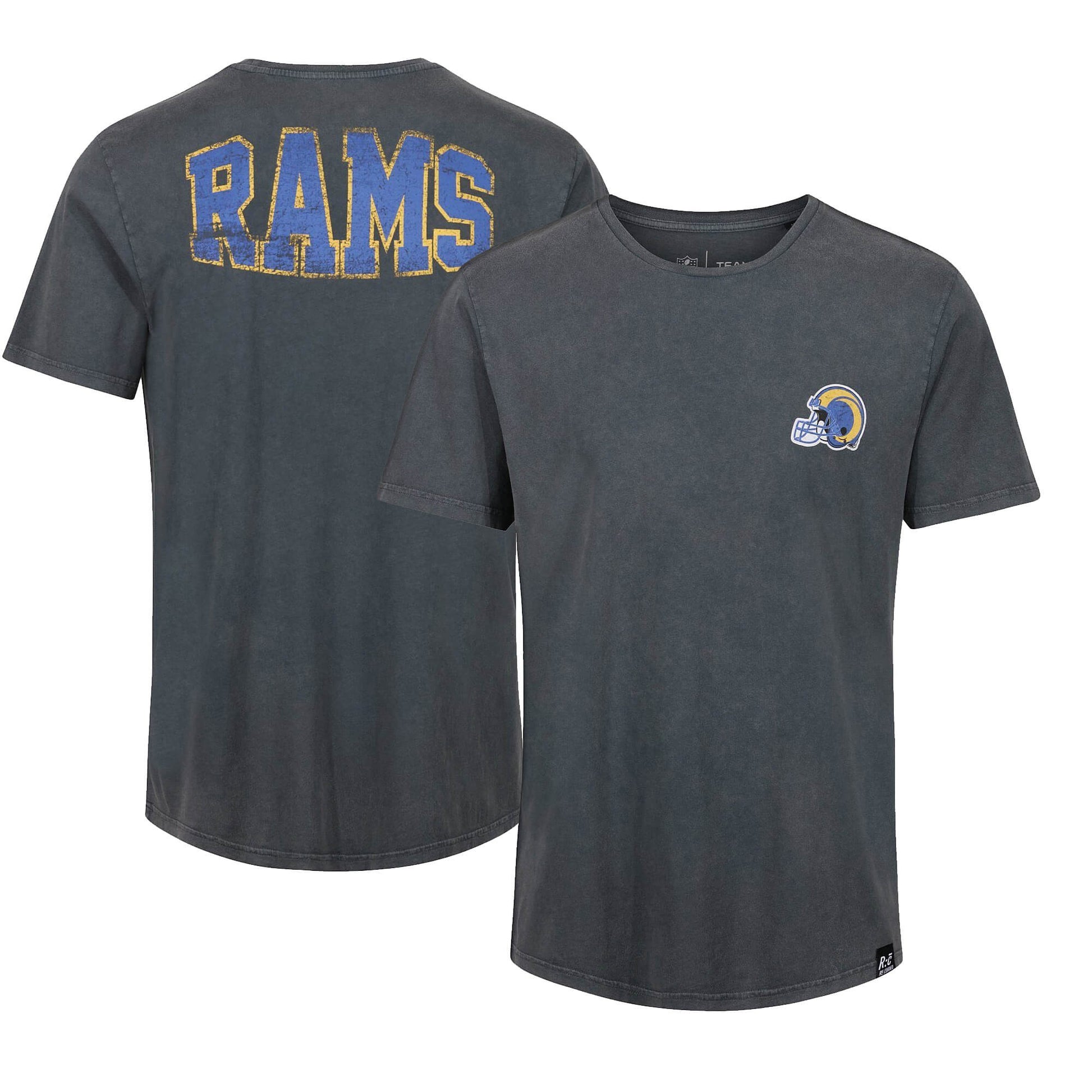 Re:Covered NFL Helmet Chest / College Backprint T-Shirt Los Angeles Rams Washed Black