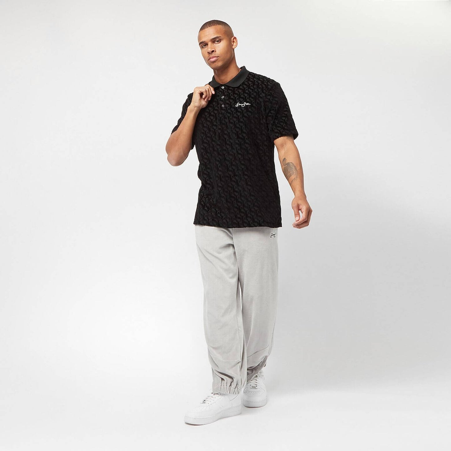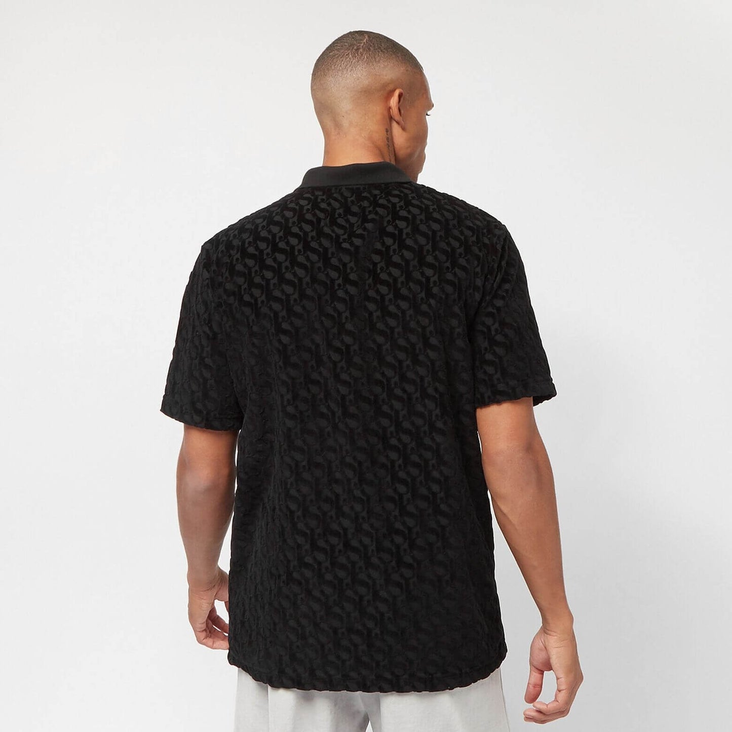 Sean John Monogram Logo Devoré Velours Poloshirt black