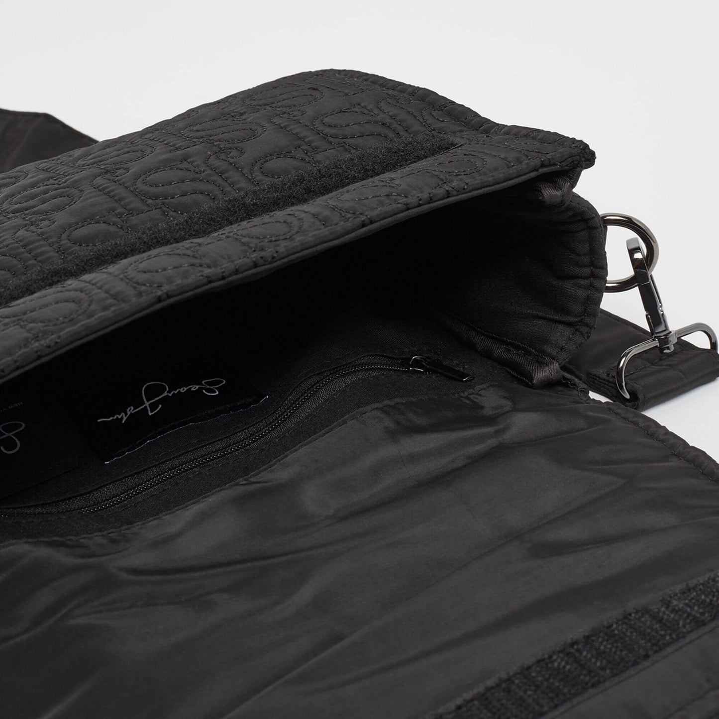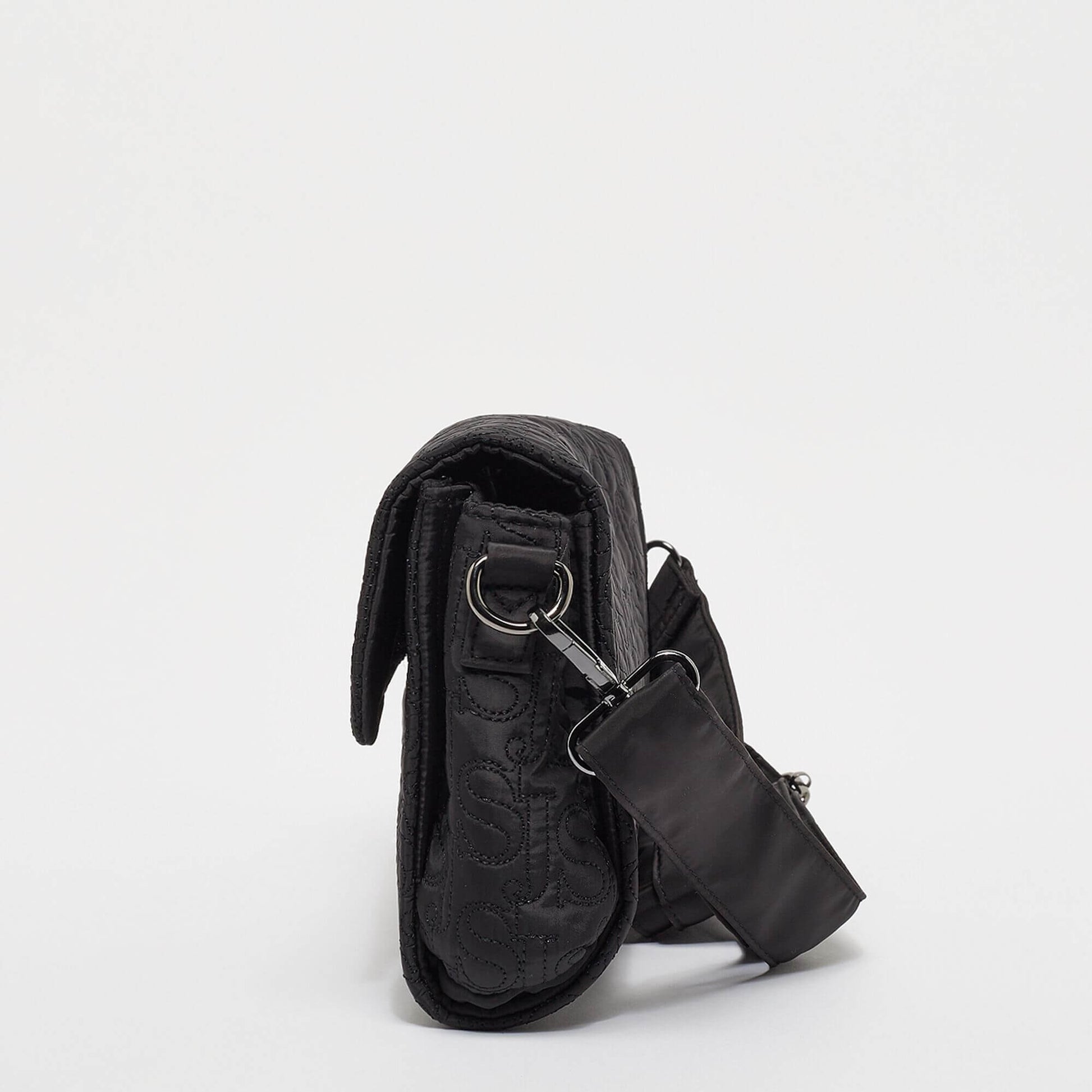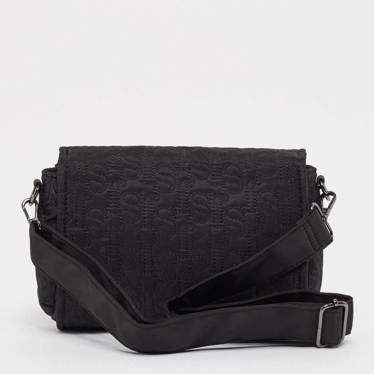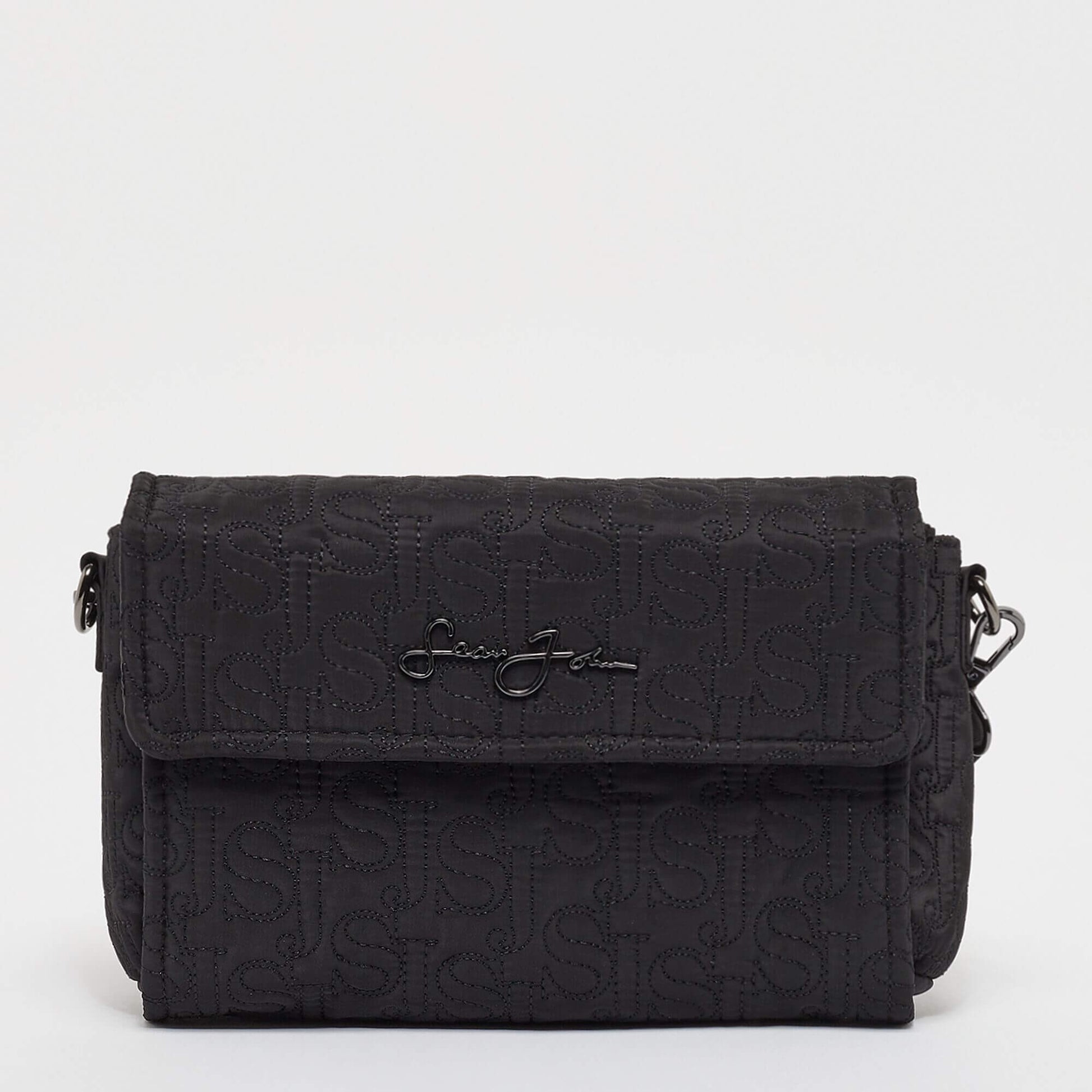 Sean John Monogram Logo Quilted Cross Shoulder Bag Black