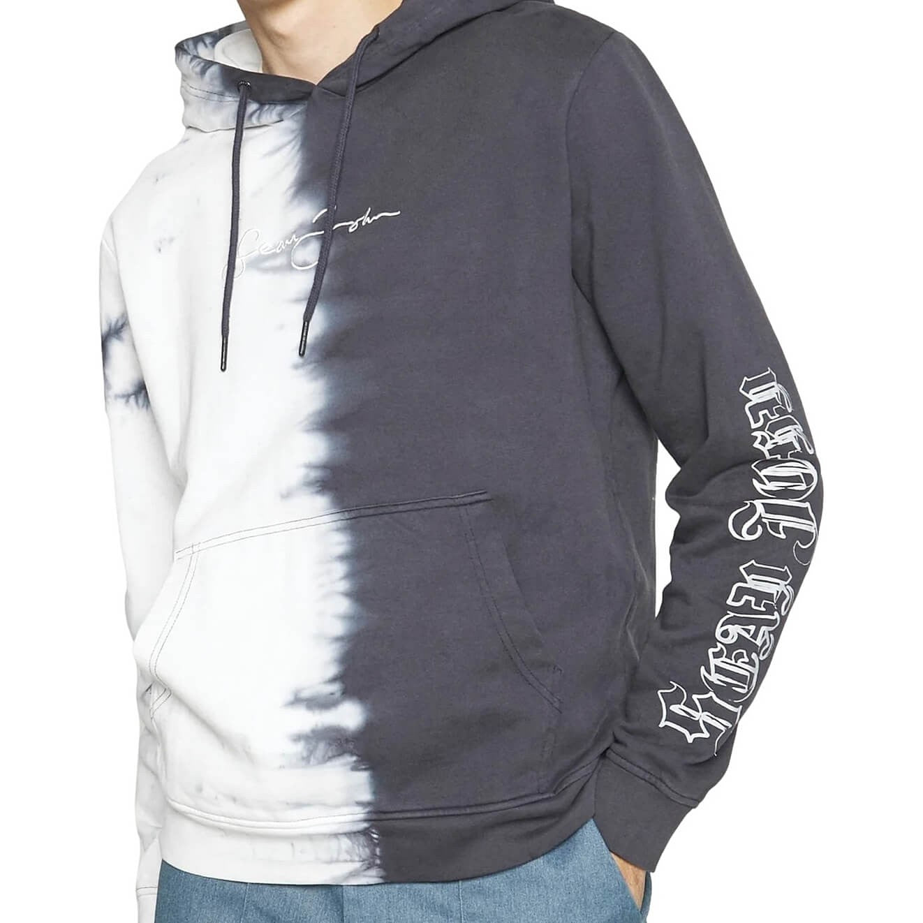 Sean John Script Logo Bleach Effect Hoodie Black