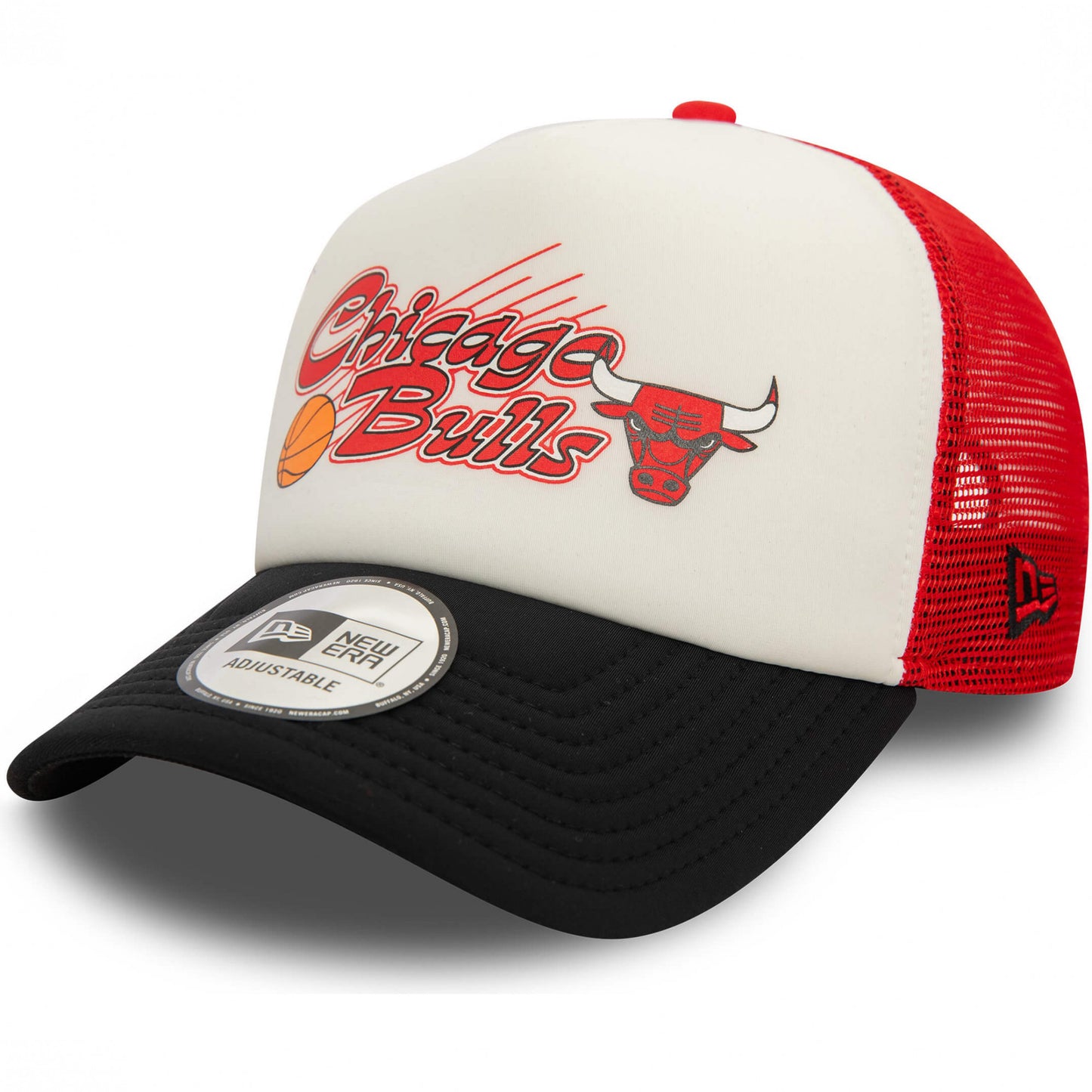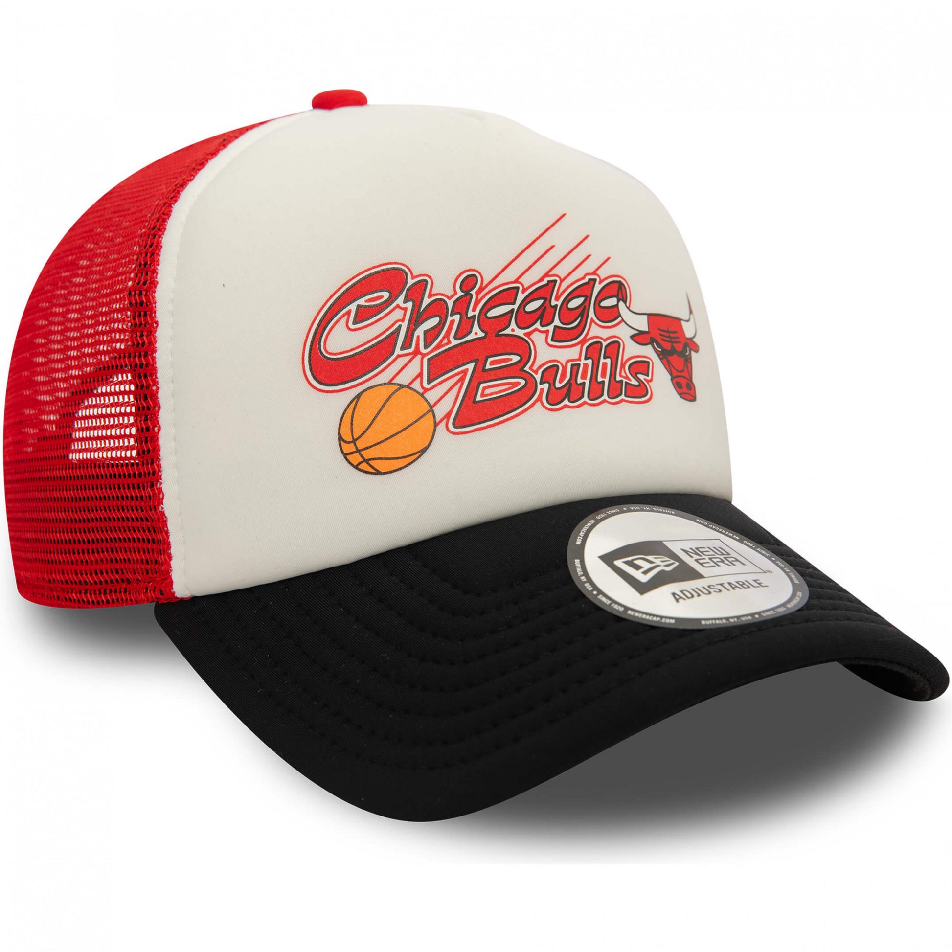 Červená šiltovka so sieťkou značky New Era s motívom basketbalového klubu Chicago Bulls. Nastaviteľná veľkosť. Oficiálny licencovaný produkt NBA.