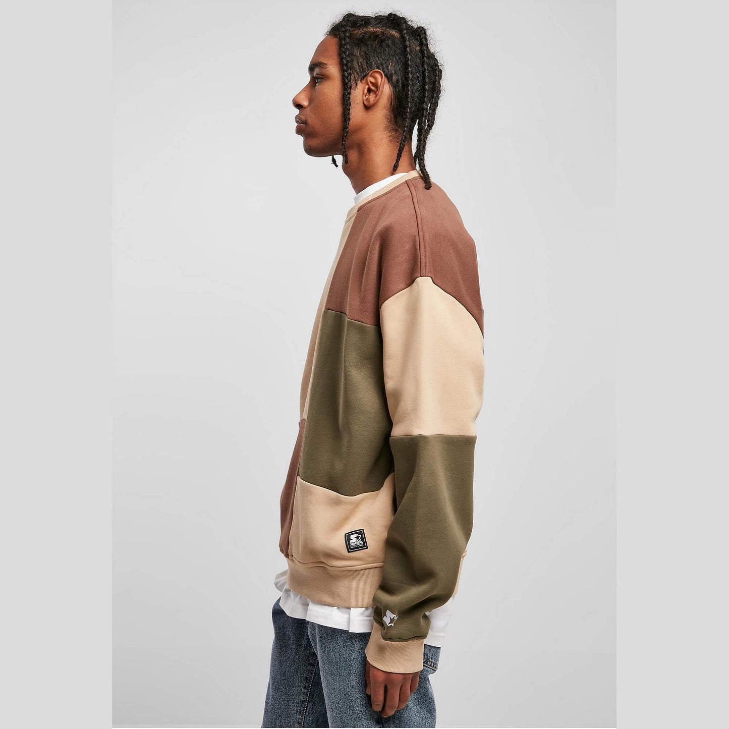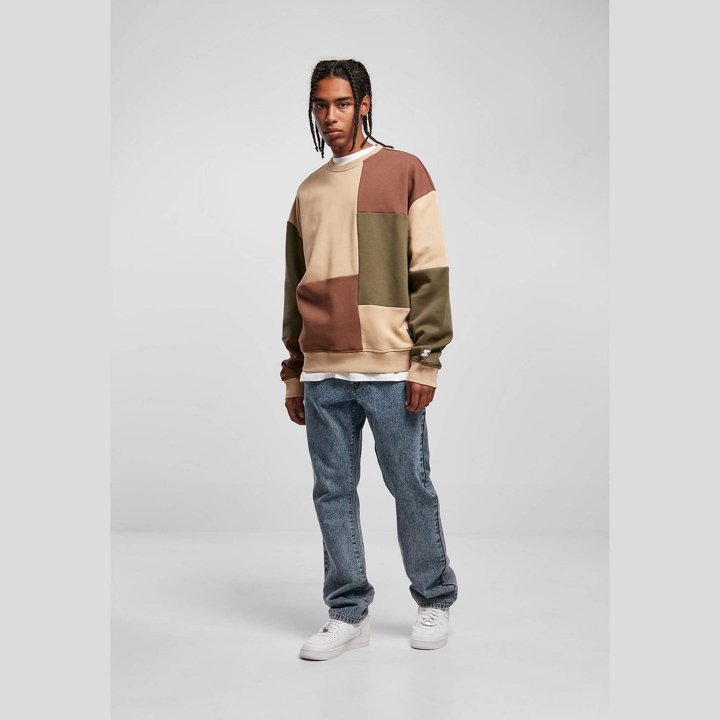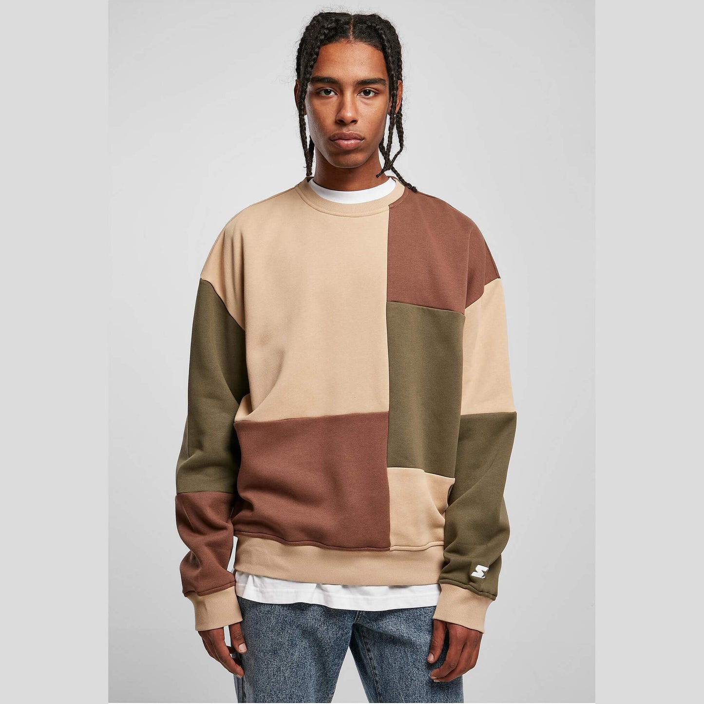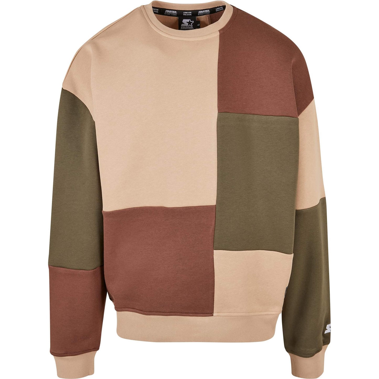 Starter Patchwork Crewneck unionbeige/darkolive/bark