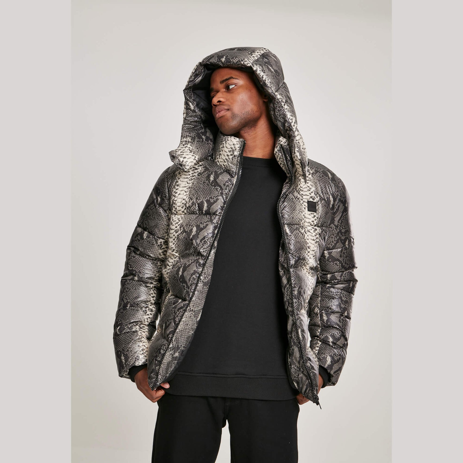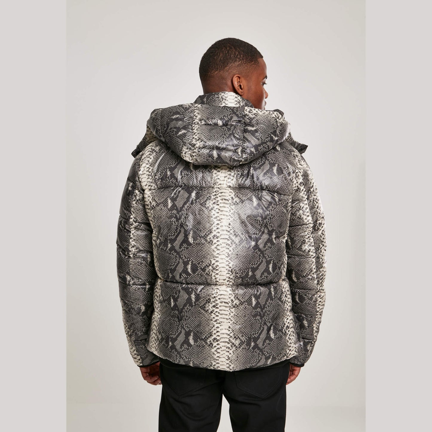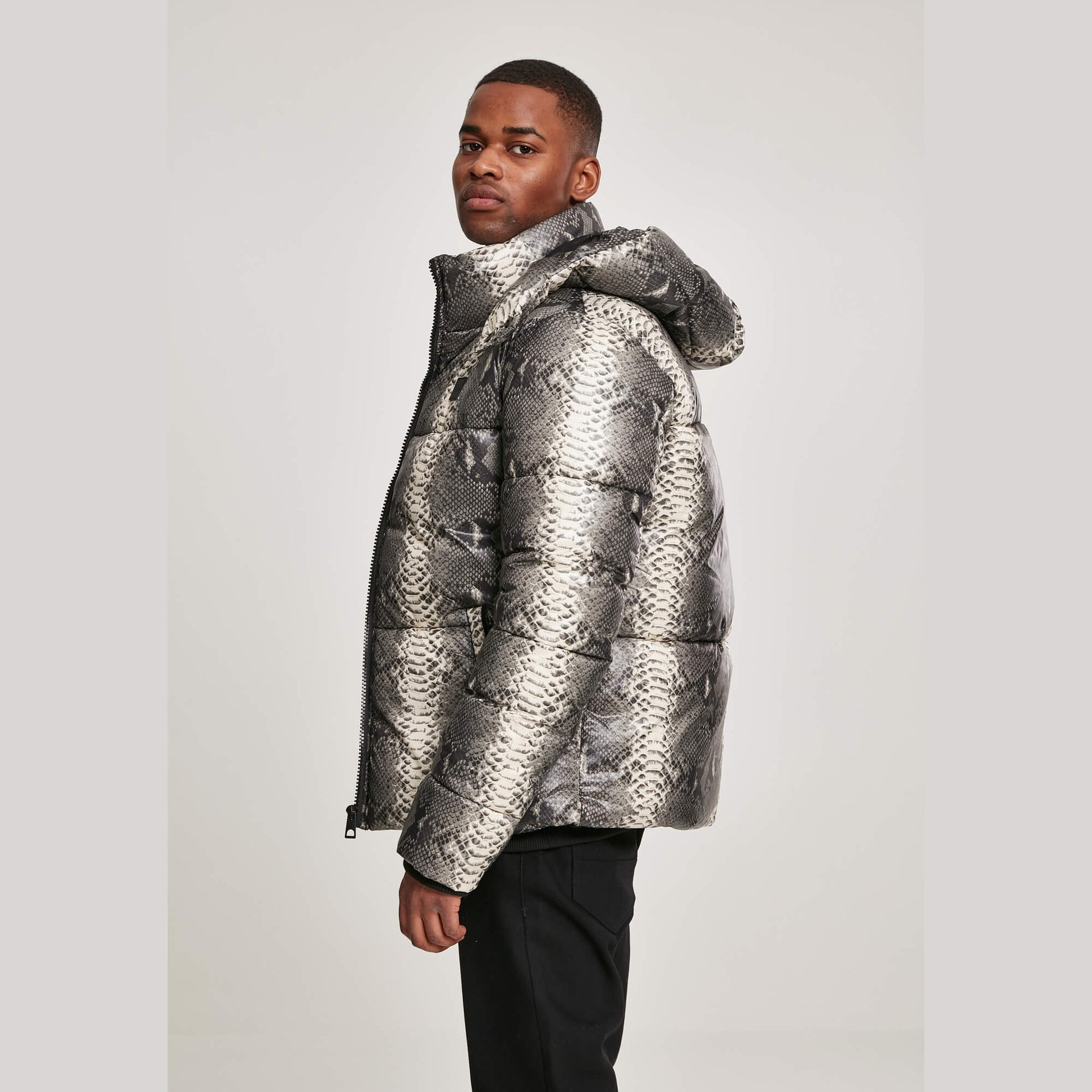 Urban Classics Hooded Aop Puffer Jacket Grey Snake