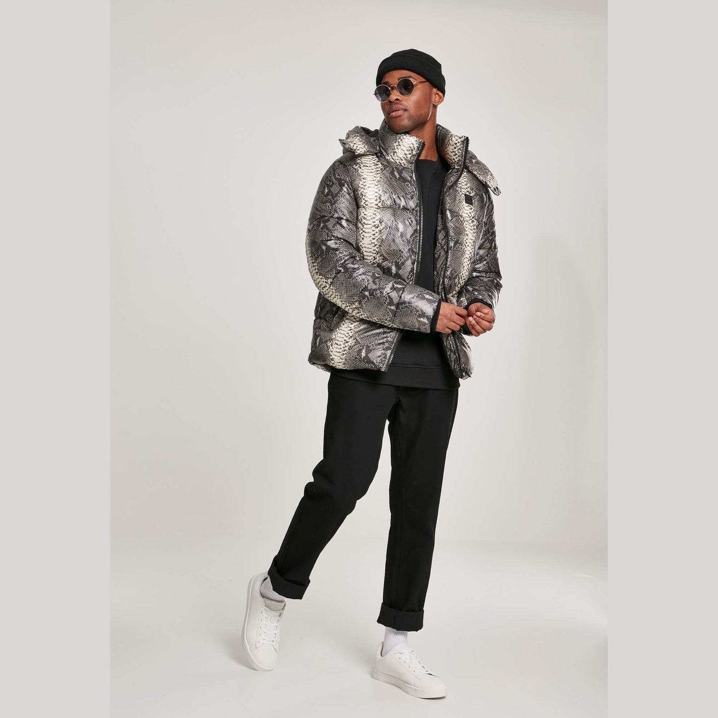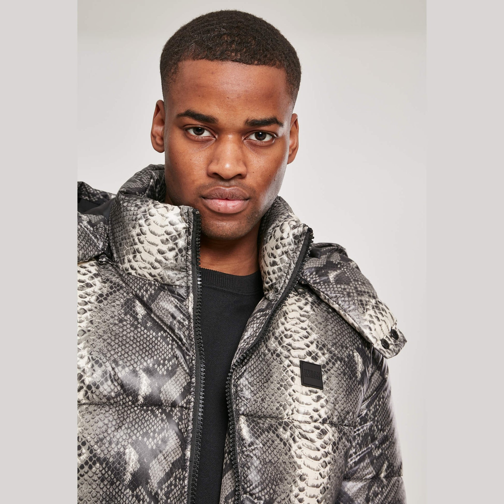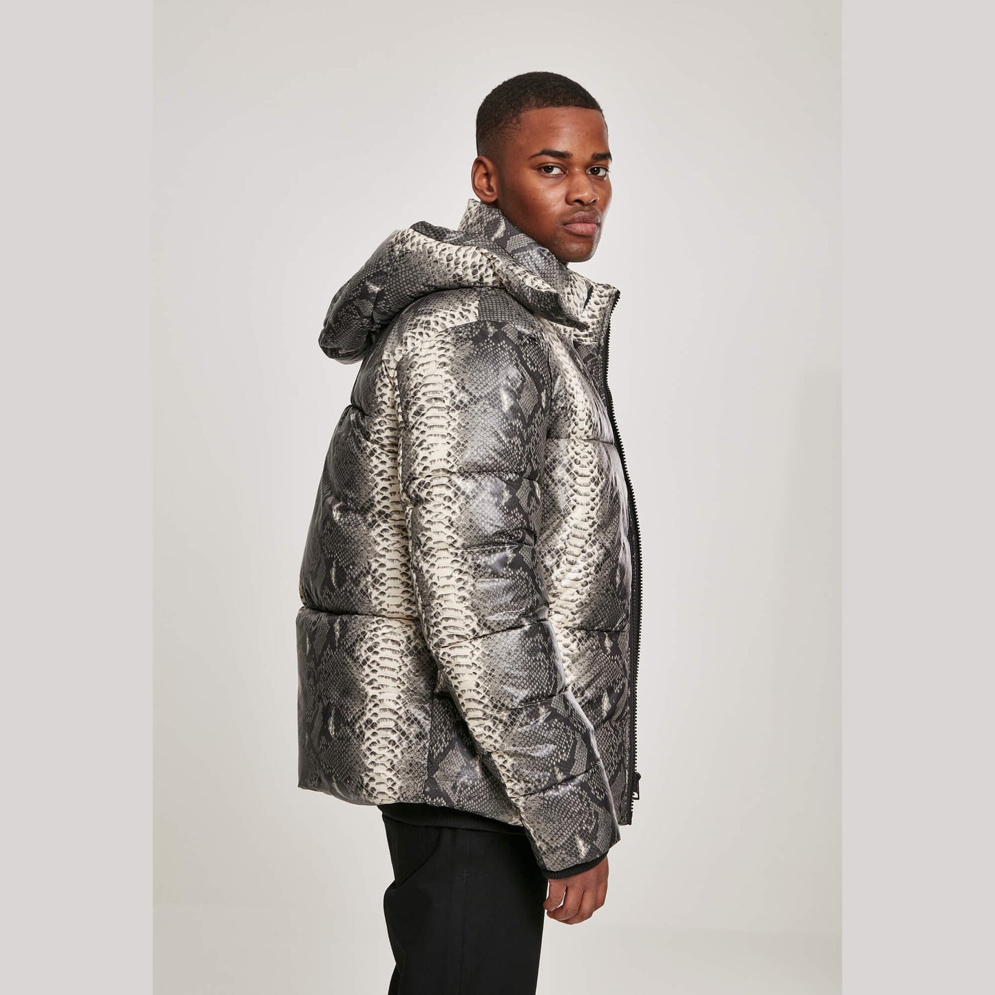 Urban Classics Hooded Aop Puffer Jacket Grey Snake