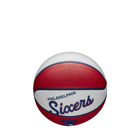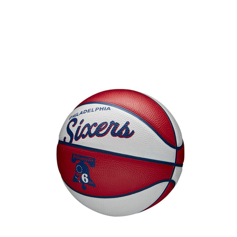 • Mini basketbalová lopta Philadelphia 76ers značky Wilson v retro dizajne, ideálna pre fanúšikov na hranie alebo zberateľstvo.